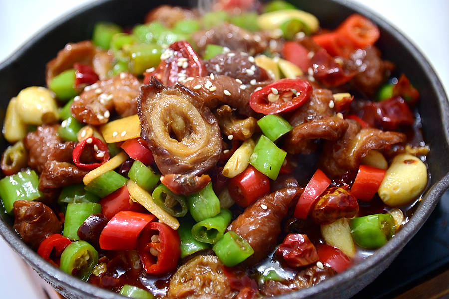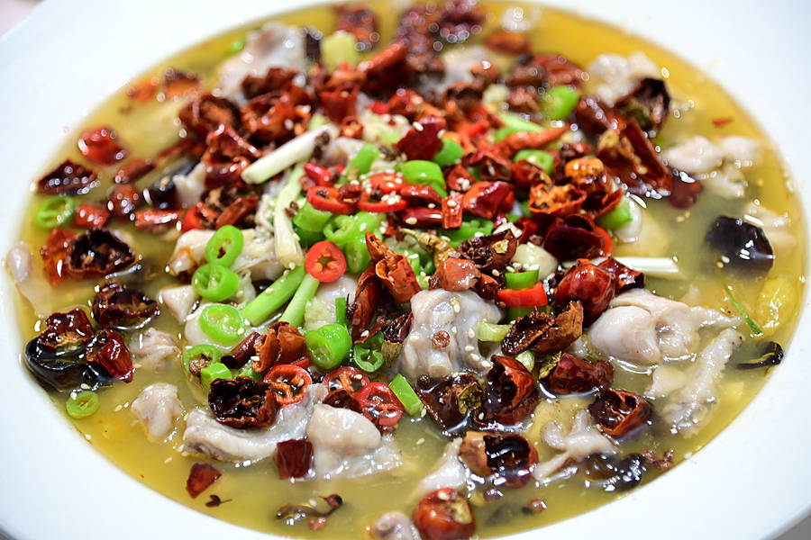 泡椒牛蛙,红彤彤绿油油的辣椒,温润如玉的蛙肉,金色的汤汁,让人垂涎三尺。
