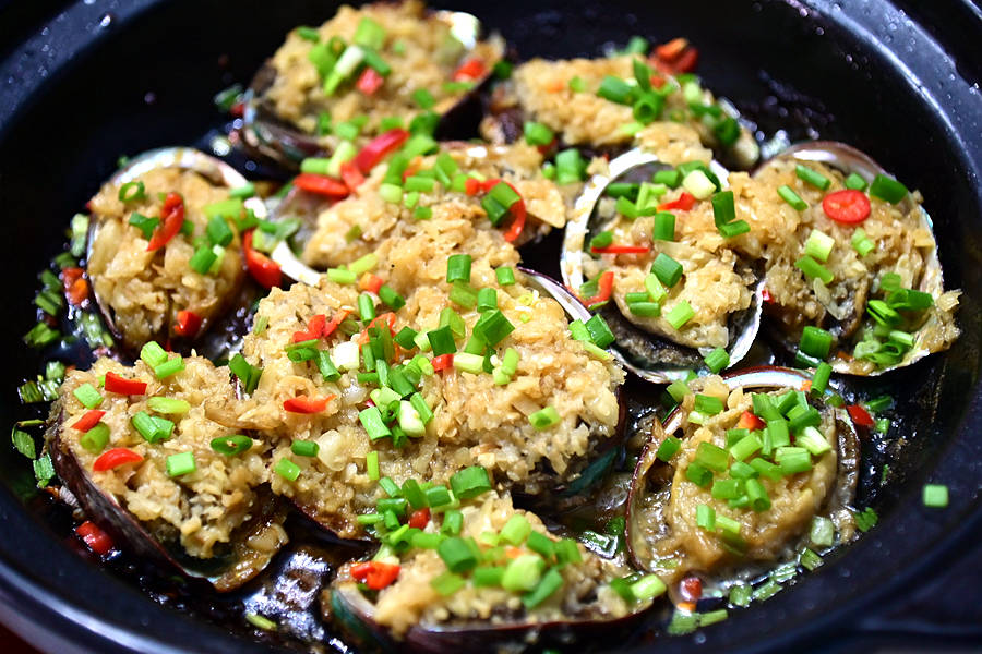 蒜蓉蒸鲍鱼,鲍鱼个大新鲜,肉质紧实弹牙,加入蒜蓉蒸熟,鲜美中带着蒜蓉特有的清香,口感滋味俱佳。