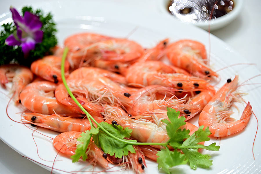 白灼基围虾,个头颇大,色泽粉红清亮,肉质饱满弹牙,滋味鲜美清甜,好的食材原汁原味都很好吃。