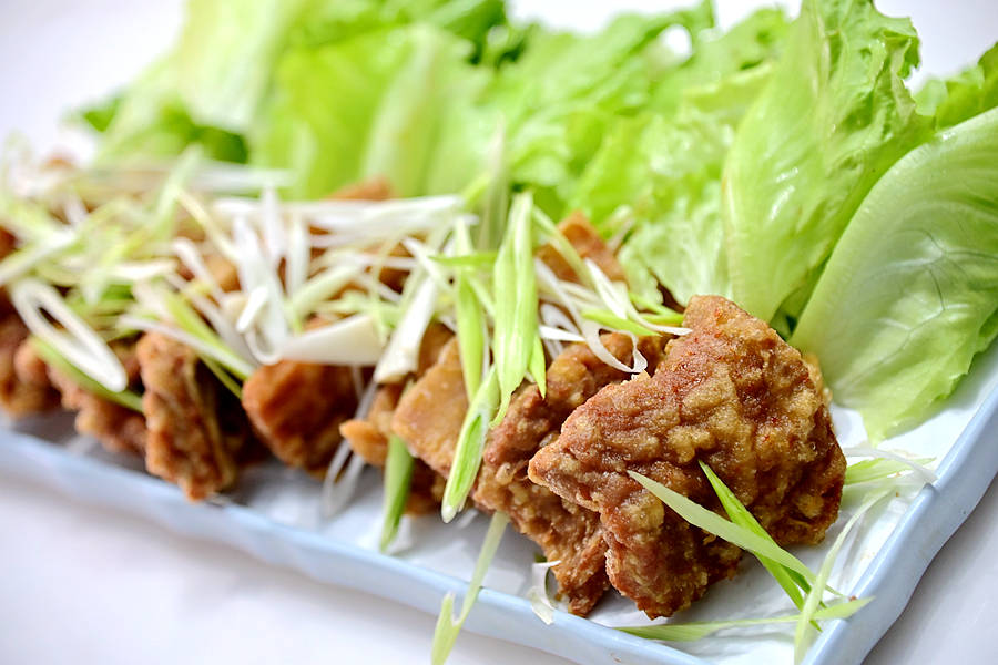 海山骨,肉肉大块厚实,肥瘦得宜,炸的金黄香酥,入口肉香浓郁,肥而不腻,回味无穷。
