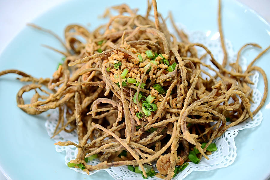 椒盐油鳗,细小的油鳗,炸的香酥可口,火候掌握的很好,不软不硬,不生不老,一口一根,完全停不下来。