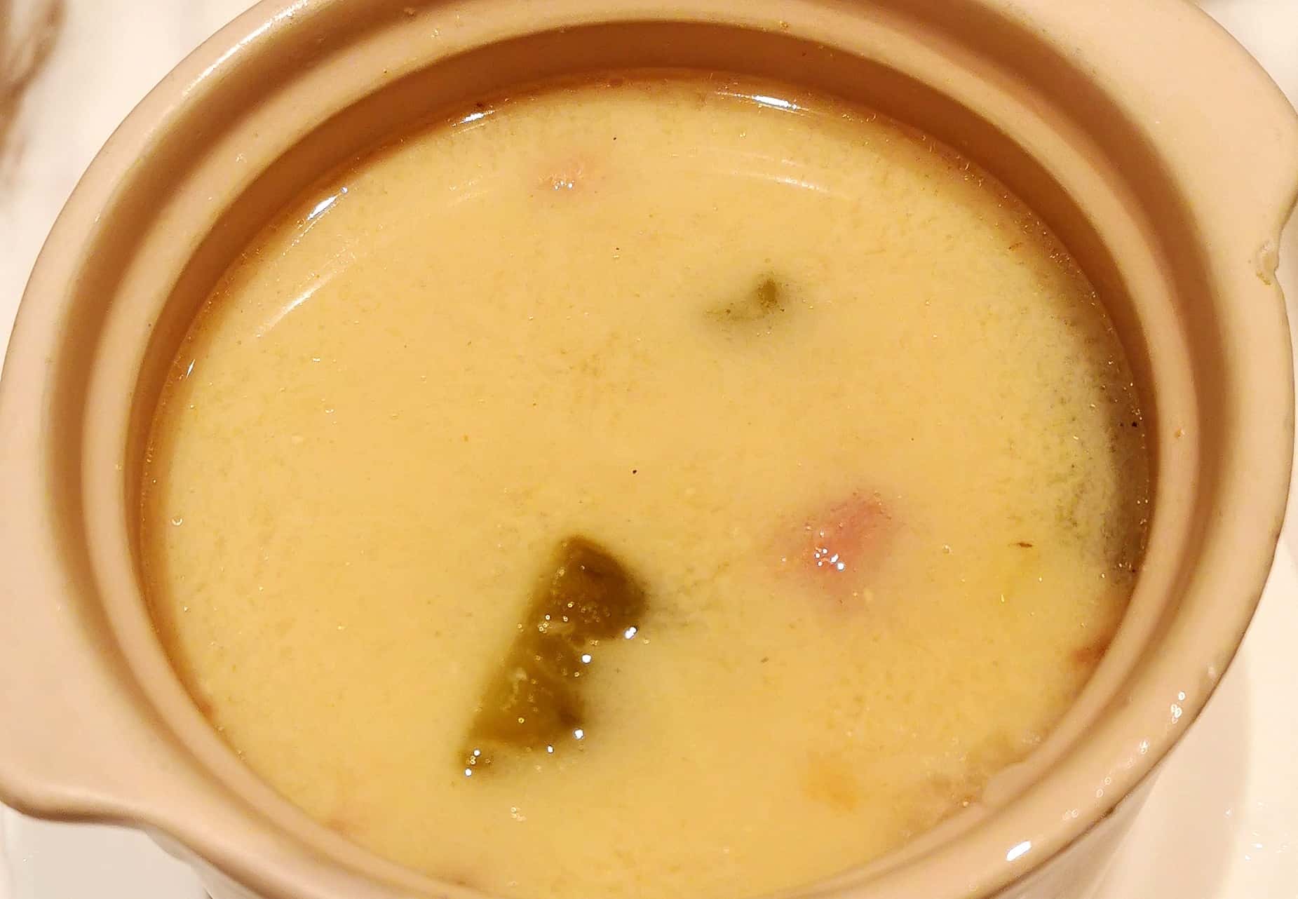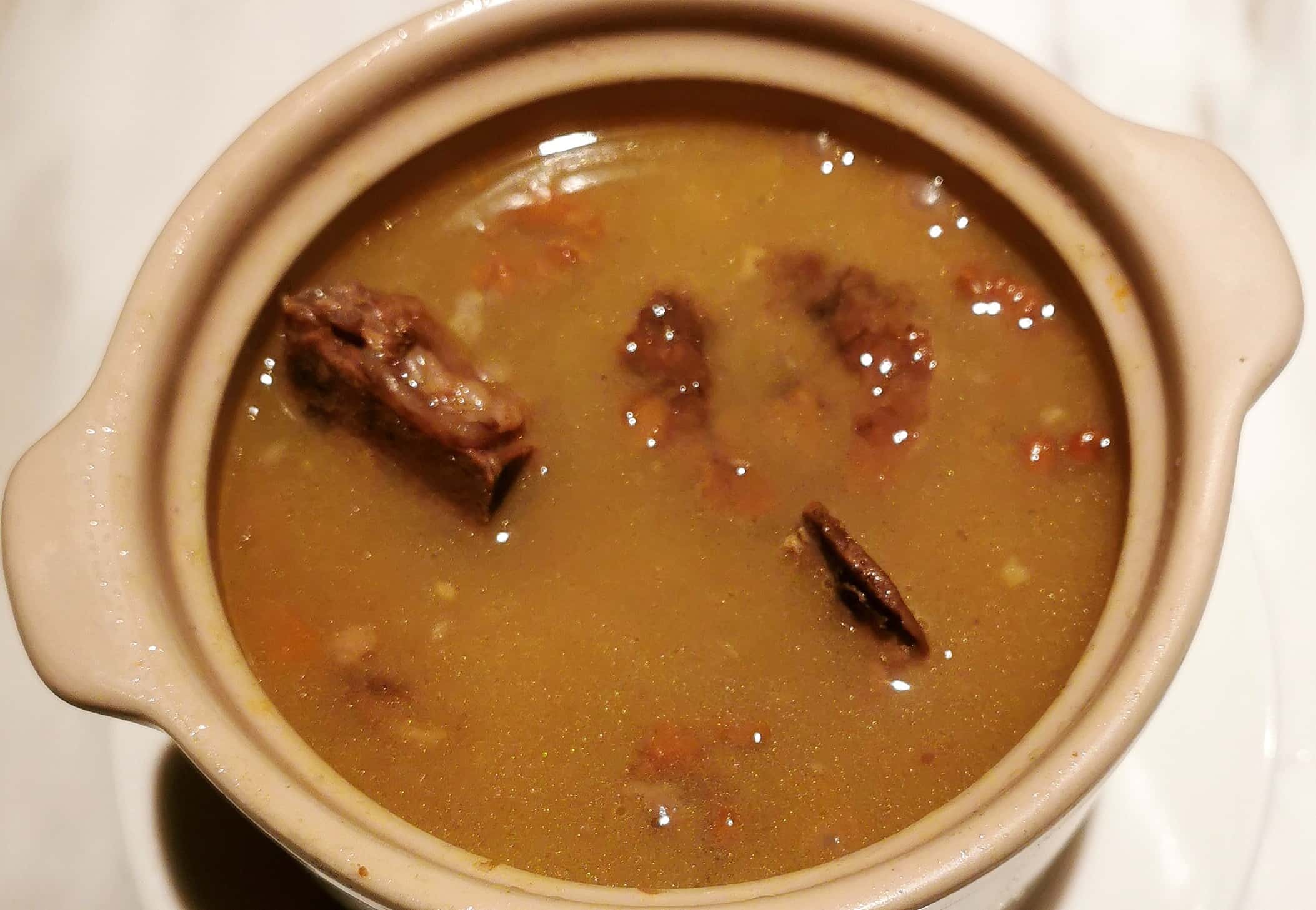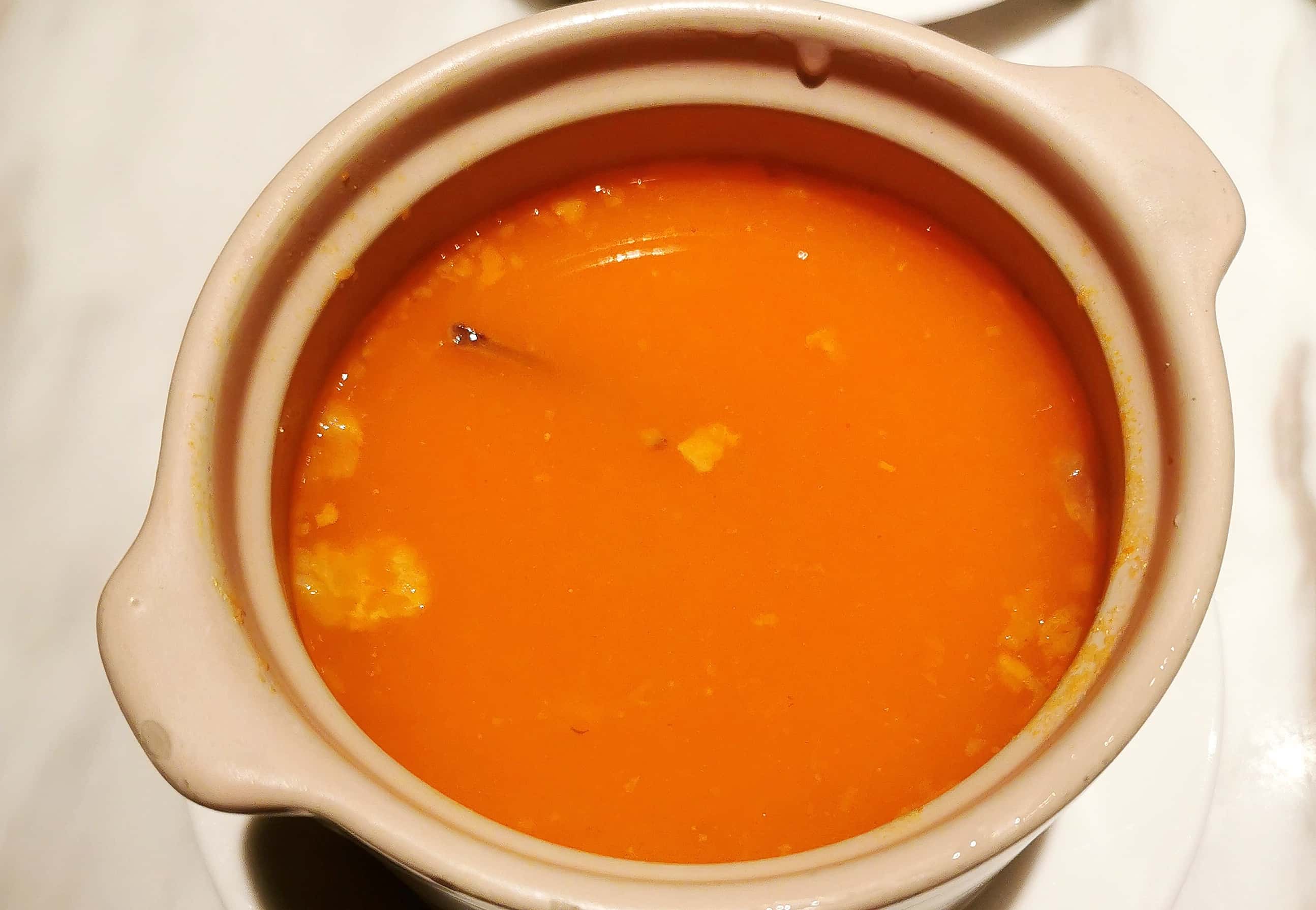 老火靓汤、明炉烧味、煲仔饭是这家粤菜馆的三大招牌。其中老火靓汤尤为讲究,需大火煲滚后转小火慢炖,方能熬出食材本味。正值酷暑难耐之际,用一碗好汤调理身体,实在是绝妙的选择。于是,我毫不犹豫地推门而入,想好好品品这来自汤城的养生汤。