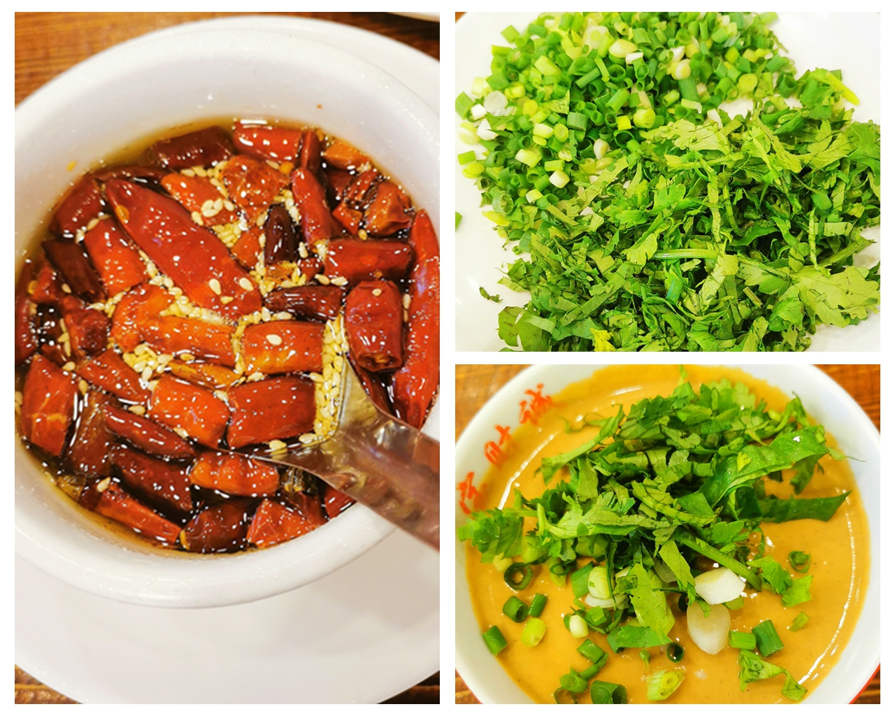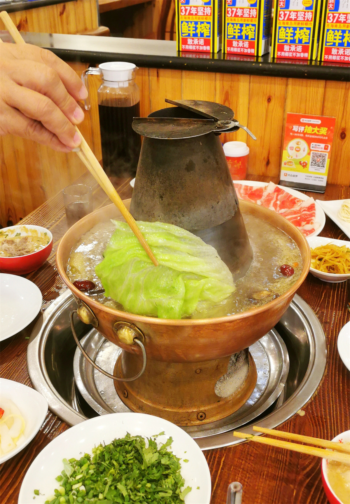 沉浸在店堂里浓郁的涮锅香气中,终于忍不住开涮。薄如纸的羔羊肉、牛肉在铜锅里轻轻一滚,蘸上特制小料,肉的醇香瞬间在口舌间散开。值得一提的是他家的现榨辣椒油,香而不燥,拌入麻酱小料里,风味立刻升级。第一次尝试涮龙利鱼,裹满小料的鱼肉入口满是鲜美,令人回味。到这个时候才懂了,老祖宗将“鲜”字拆成“鱼”与“羊”,原来早已道破这两种食材的绝佳默契。