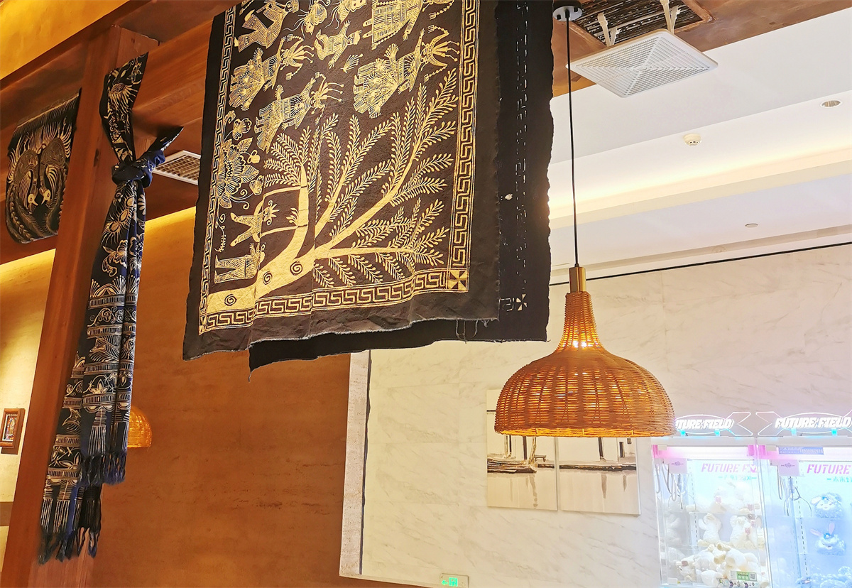 循着这份记忆,我急切地走向商厦四层的“王奋斗贵州酸汤牛肉火锅店”。身着苗家服饰的服务员笑脸相迎,店内的竹编灯、苗族蜡染布满是民族风情,恍惚间,竟像再次踏入了西江苗寨的街巷。