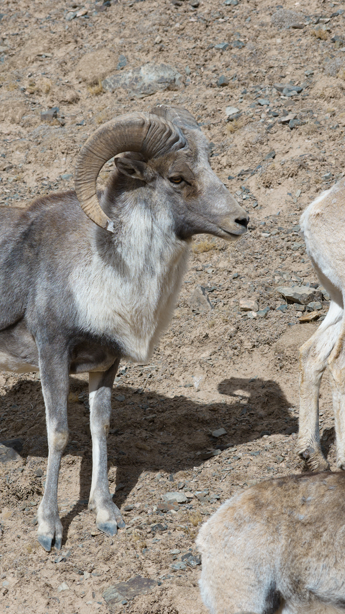 盘羊又叫“大角羊”“大头羊”,属国家二级保护动物。盘羊的名字由来和它的长角密不可分,雌性盘羊角短而细,雄性盘羊的长角,仅根部直径就可达几十厘米,长度更是可以绕耳朵盘旋一周甚至一周半,可达1米多。整个头部重量可达20公斤左右。