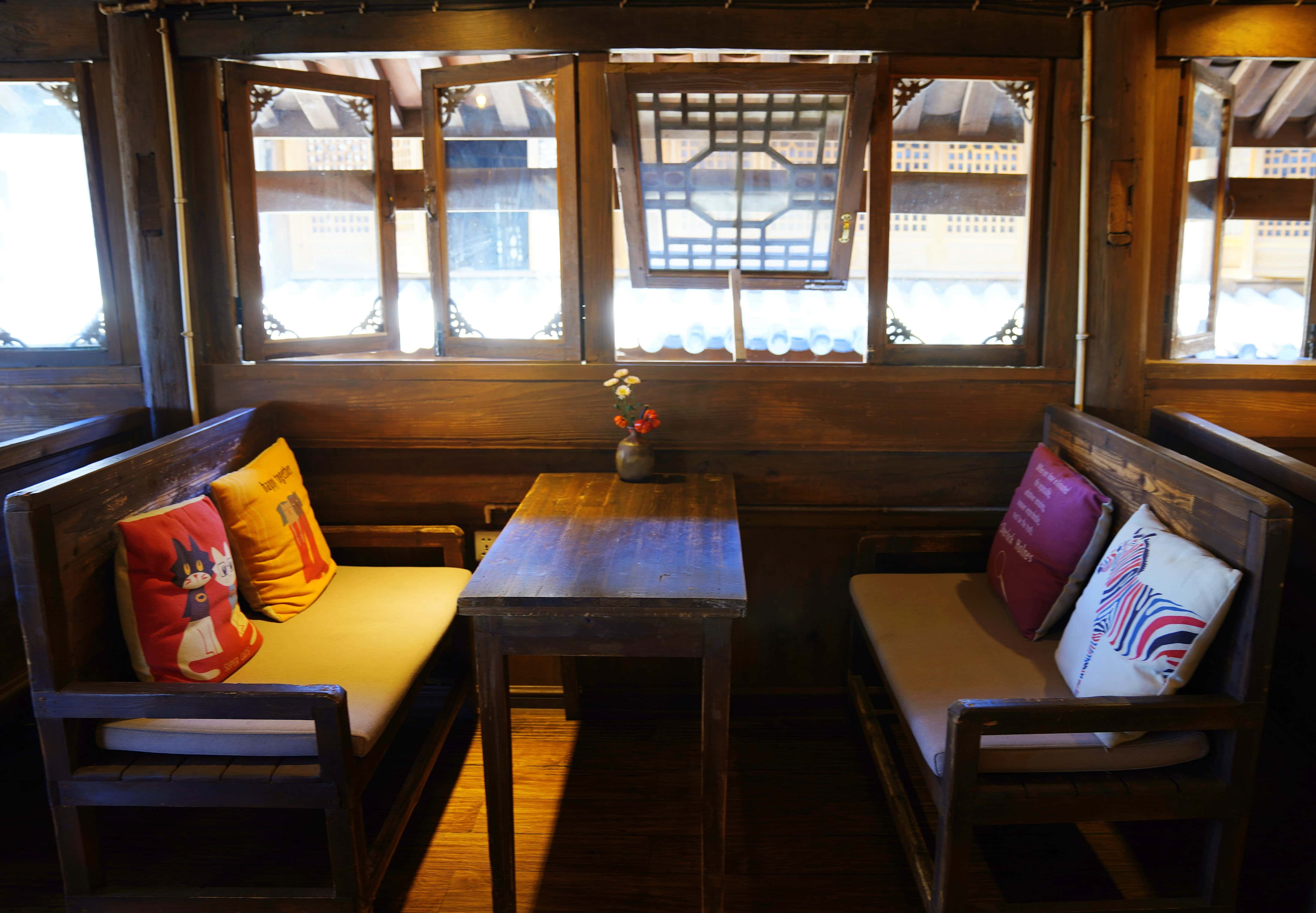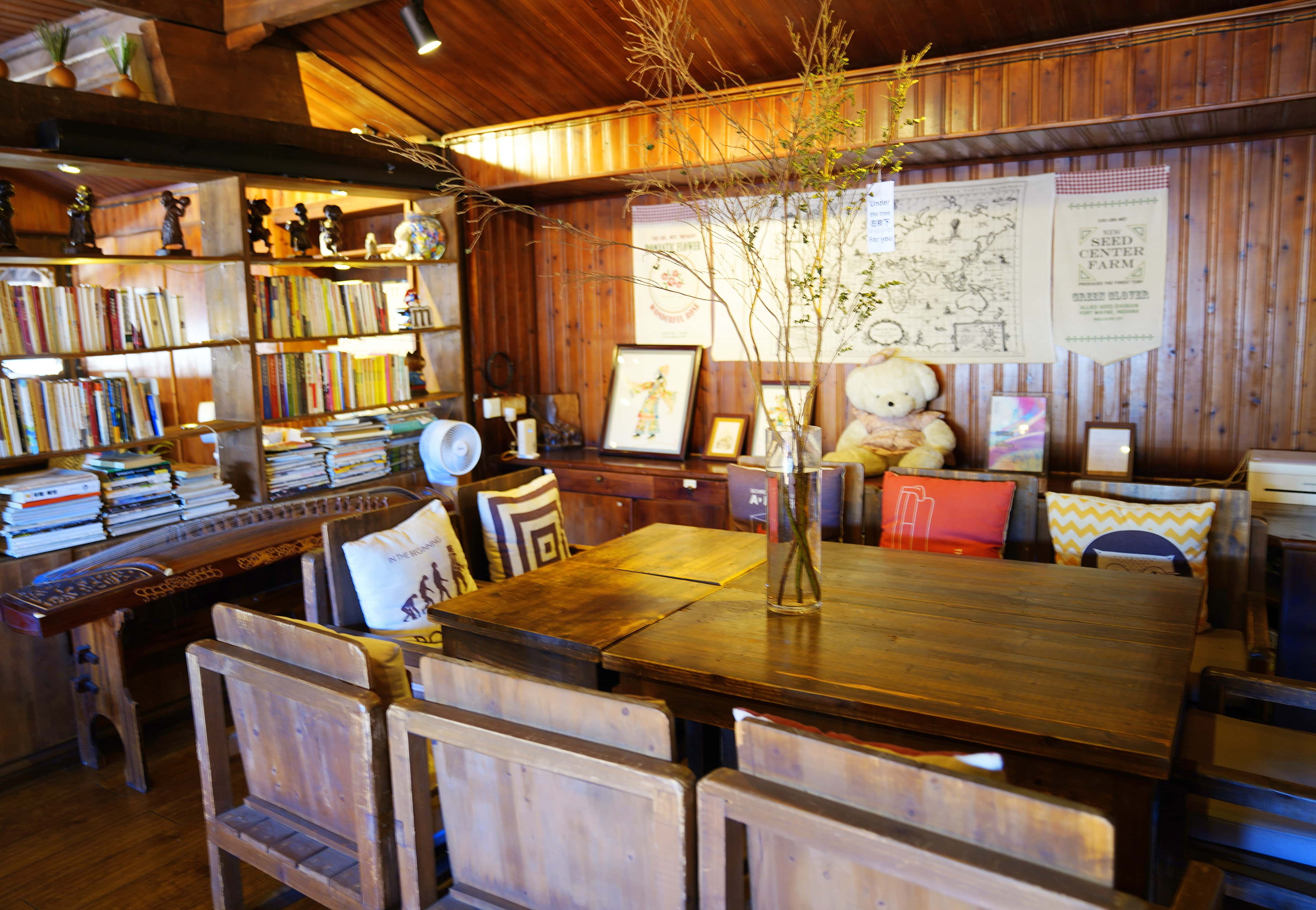 店内环境雅致又透着古朴气息,一张能容纳十人的大桌旁,摆满了各式装饰物与图书,你可以约上三五好友,边聊边品咖啡,也能独自静坐,翻几页闲书打发时光。靠窗的一排卡座位置绝佳,探出头去,对面的店铺、狭长的街巷尽收眼底,恍惚间竟生出几分异域韵味。