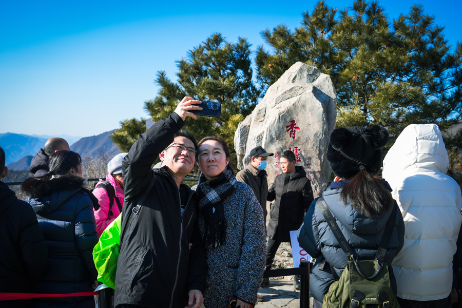 元旦清晨,香山公园主峰香炉峰上迎来众多游客,大家面向东方,静静等待2026年第一缕曙光划破天际。当金色阳光洒满山巅,人群中响起阵阵欢呼,新年的希望与温暖在此刻凝聚。园内主干道沿线,精心布置10处节日装饰,融合“2026”“新年快乐”字样及寓意“马上有福”“事事如意”的吉祥图案,向游客传递美好祝福。此外,公园还特地在北门眼镜湖附近区域设置了“香炉峰”主题打卡点,让每一位游客都能留下新年纪念。节日期间,公园与香山森林消防站联合开展森林防火宣传活动,并在园内设立四处学雷锋志愿服务站,为游客提供咨询、指路、热水、讲解等贴心服务,让节日游园既热闹欢欣,也安全有序。