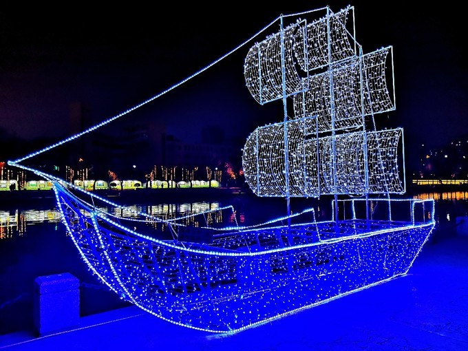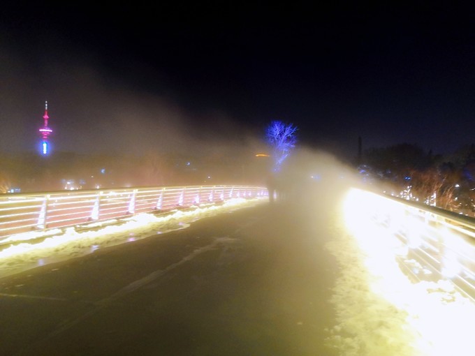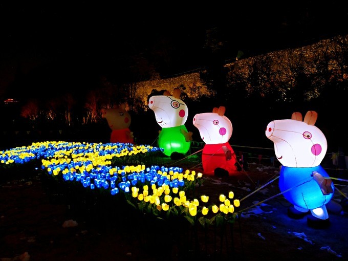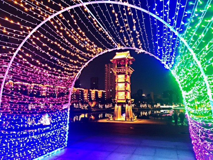 有一个多月没来石头城了,没想到这里也搞了几个灯组,虽然不成规模,但是也算有亮点,比如这个灯光隧道过去就是石头城码头的牌坊,穿越的感觉!春节期间石头城公园的栈桥上除了加了灯光,又喷上了水雾,走在桥上,伴着两旁的积雪,来回的路人几乎都看不见,反复进入仙境一般,太梦幻了!