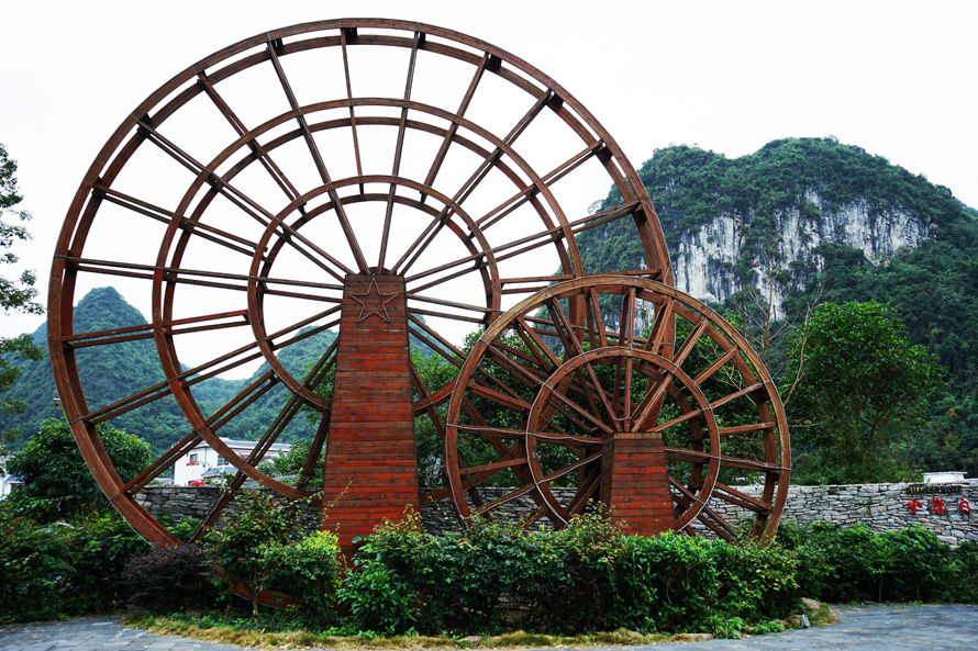 前些天我到的时候,看到有村民身着盛装在和游客们跳竹竿舞,一架巨大的水车在河水中转动,无论人文环境,还是自然环境都不错,有浓郁的壮族特色。