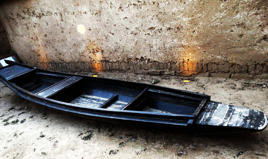 晚秋里的村庄,风烟俱净。在一处叫“枣园”的庭院里,墙角下有一条小船,或许也曾逆流而上泛舟黄河,如今化作诗意的点缀静默一隅。