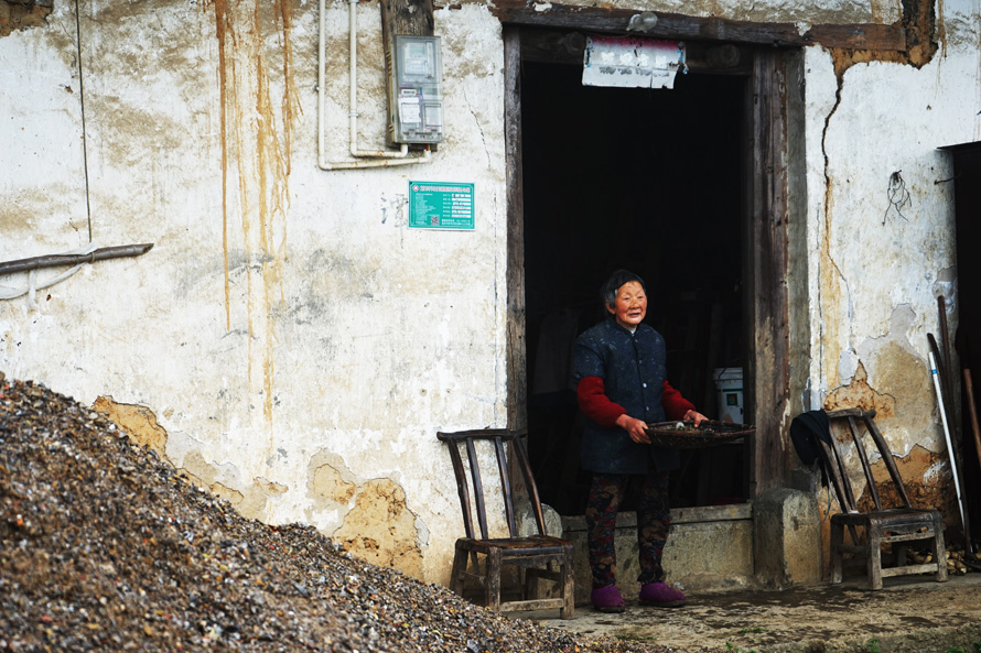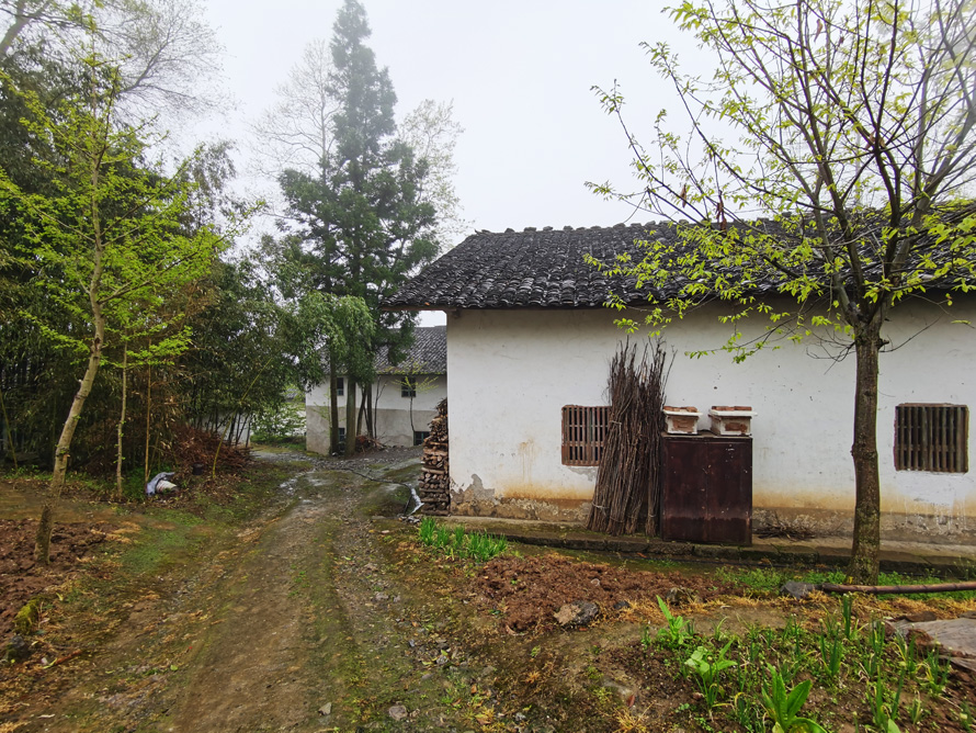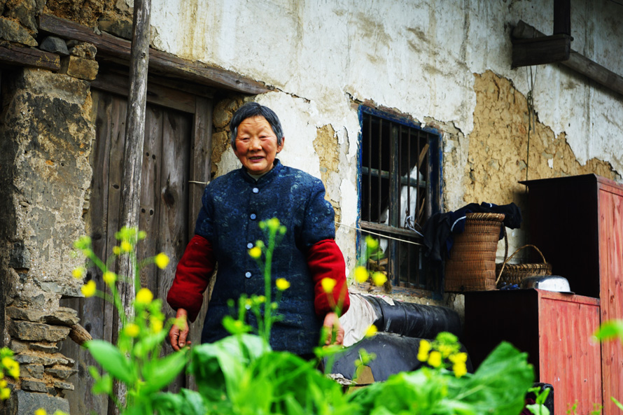 我撑着伞随意在四处游走,在一座老屋的庭院里,看到一个老奶奶正在择菜,我走过去打招呼,无奈我听不太懂她的语言,她把我拉进堂屋避雨,屋内有各种老式的农具,以及陈旧古朴的家具,我离开的时候,她起身送我,说着我听不太明白的话。她真的是一个朴素而热情的老奶奶。