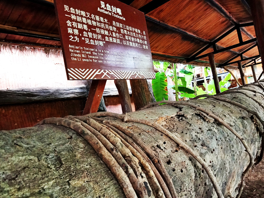 这里的一间土坯房内保存着的一根巨大的枯木令人望而生畏,上面悬挂的标牌上写着“见血封喉”四个字,路过的人多是远远地看上一眼,是没有人用手上去抚摸的,而倘若是古柏或者黄花梨,恐怕早就油光滑亮摸出包浆了。