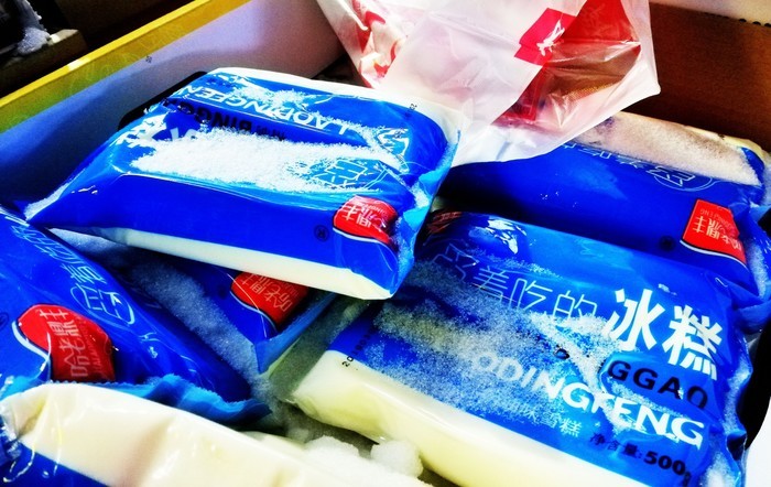 我说你这雪糕就这样卖啊?他说是的,我们这里一直就是这样卖的,你们那里都是放冰箱冰柜,我们这里不需要,这样的气温,比冰箱冰柜温度还低很多……听他说话我都觉的更加寒冷了。