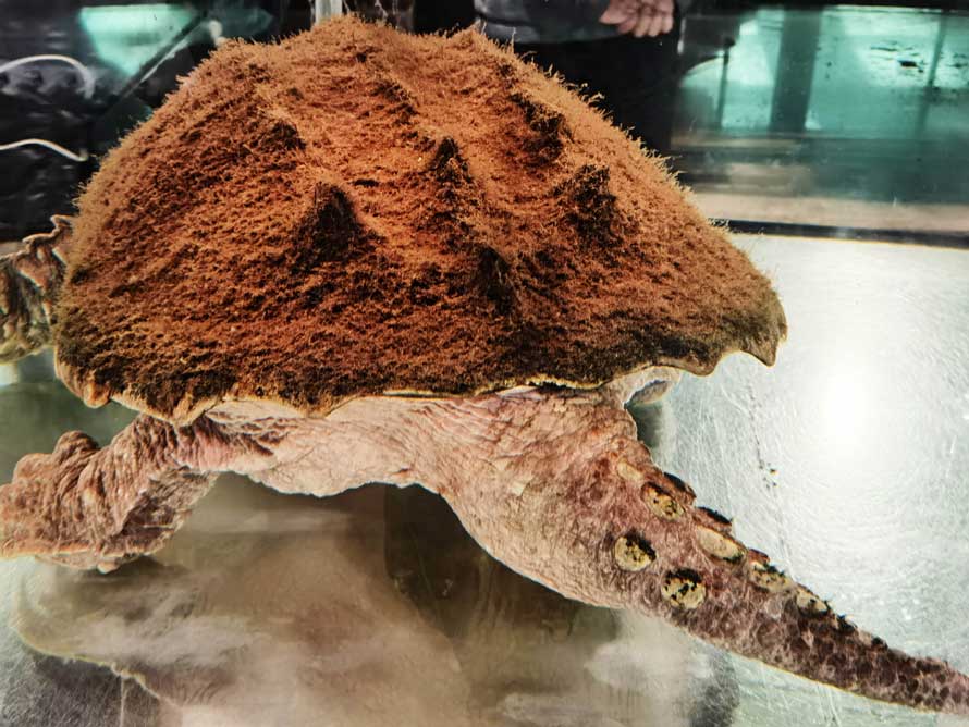 在爬行动物馆里,墨西哥王蛇、巴西大蜘蛛、椰子蟹等不计其数,还有很多海龟,那些巨大的海龟背上长满了绿毛,或者绿藻,看起来像是活了至少好几十年的样子,不知道是什么品种,生活习性如何。还有一种陆地龟,貌似不生活在水里,据说素食动物,吃草。