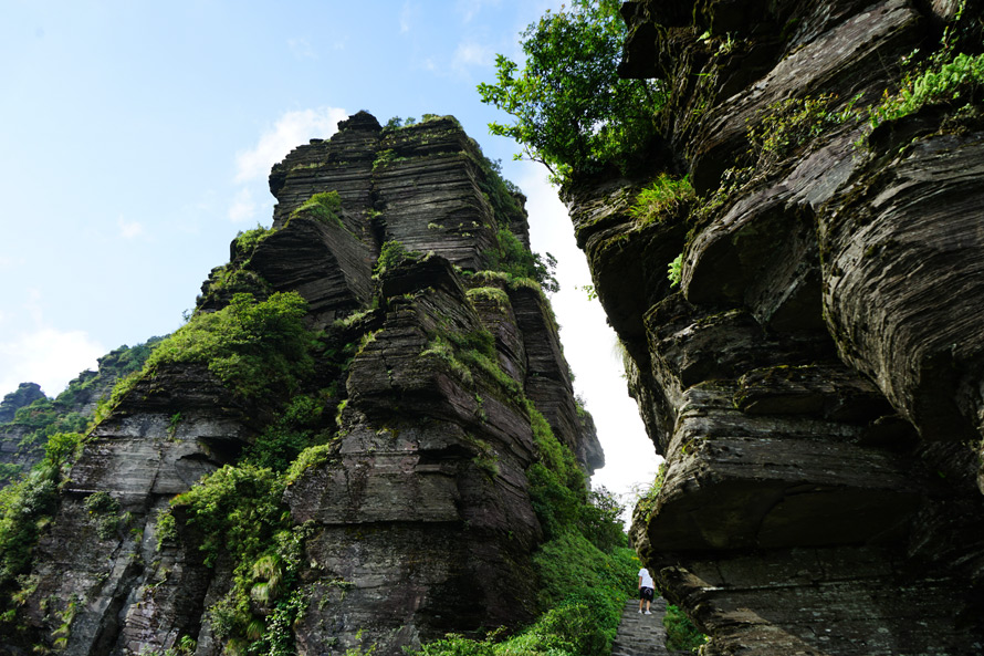 早在2019年,《国家地理》杂志在评选“全球最值得到访的28个旅游目的地”中,梵净山位列第三,是中国唯一入选的景区,而且在“自然”类别中高居首位。有人说这里是原始的生态王国,红尘间的梵天净土。的确是这样,亿万年来,它用自然的伟力塑造出庞大深邃的山体,用自身的努力成长出巍峨雄奇的山峦;它用时间的绵力滋润出林木遮天的原始森林,用坚韧的毅力演化出生机勃发的灵动世界。