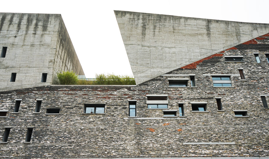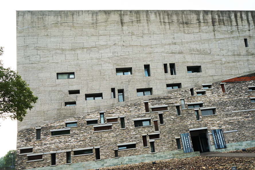 在我参观过的一些博物馆里,宁波博物馆的外观造型似乎比较特别,说不上来是什么感觉,看起来建筑设计很不规则,怎么拍摄都是歪的,砖瓦交错堆砌,线条长长段段,或许这就是设计师追求的美感吧。