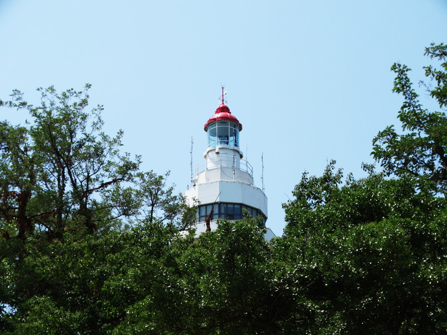 这里的标志性建筑是就是最高点的灯塔,当然也是烟台标志性建筑之一,灯塔是用来为进出港口的船只导航之用。不过现在的灯塔并不是最早的灯塔,最早灯塔建造于清朝光绪年间,是由英国人建造,但是由于年久失修被拆除重建,每到晚上,灯塔里的灯便亮起,为远行的船只导航。