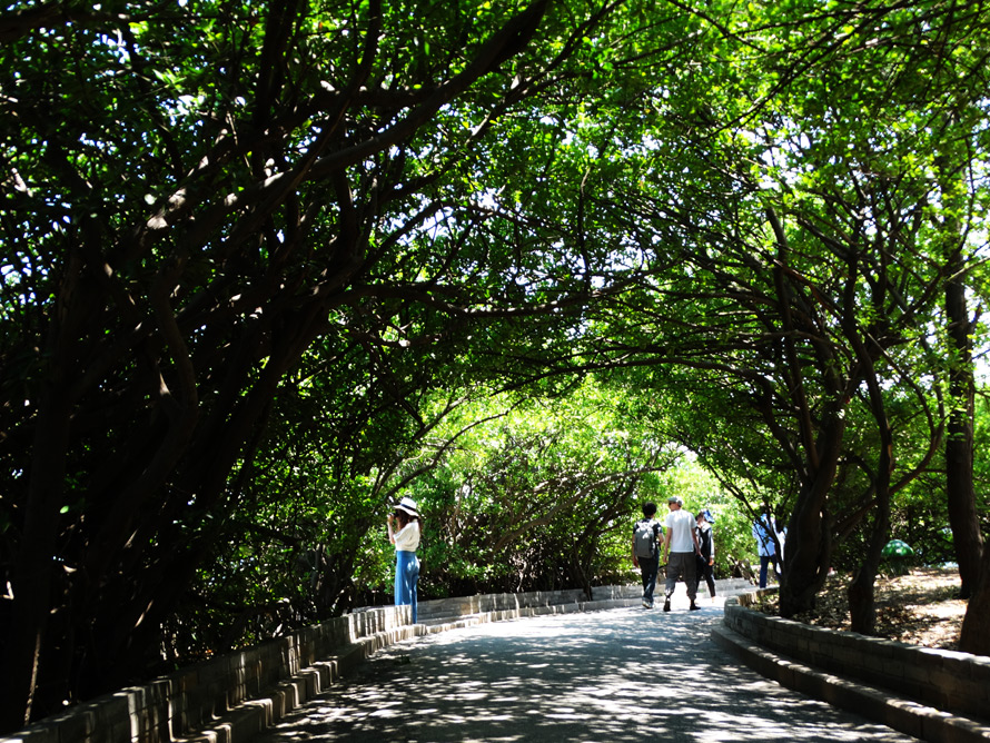 岁月涤荡了历史,也扫清了列强丑恶的嘴脸,如今,这里苍翠一片,新鲜的阳光普照大地,万物沐浴着海风,只有那埋葬于大海的泥沙还铭刻着孱弱的历史片段吧。