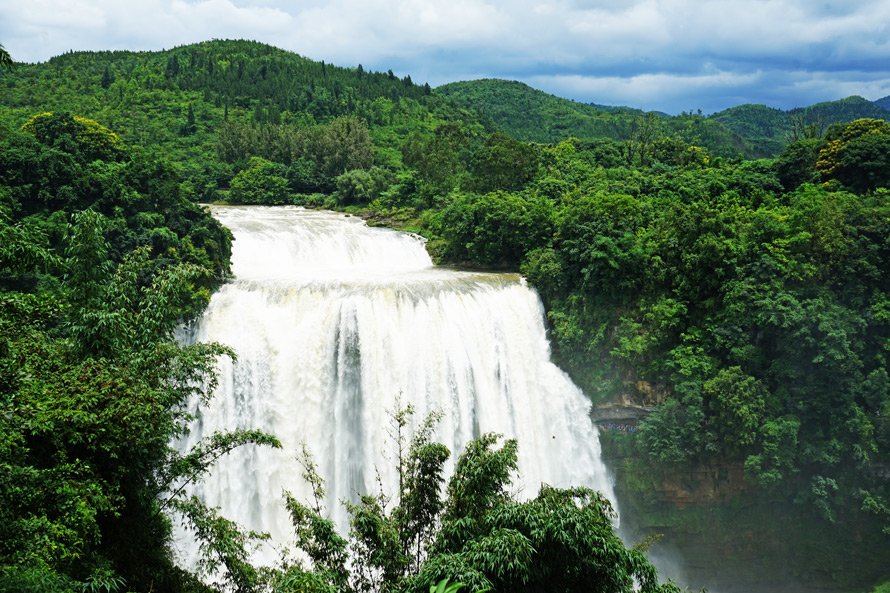 其实,黄果树不是只有这一条瀑布,而是一片瀑布群,旁边还有一条陡坡塘瀑布,同样是“今古长如白练飞,一条界破青山色。”绵绵群山造就了黄果树瀑布的壮美,蜿蜒曲折的白水河孕育了瀑布群的雄浑,它们滋润着这一方土地,刻画出人迹罕至的山野绝世美颜。