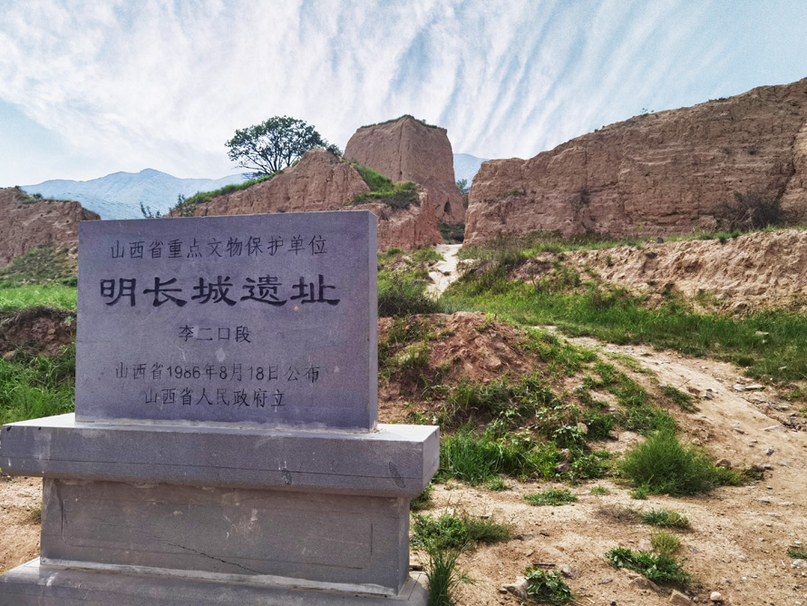 长城是我国独具特色人文景观,在历史上,长城经过的地方就是边塞,李二口村也不例外,绵延千里的阴山支脉,将这方大地屏蔽关内,然而古时的硝烟依然飘摇于山脉上空,作为抵御倭寇的工事,明嘉靖明二十五年(1546年),沿起伏的山脉,城墙拔地而起,和其他地段的明代长城不同的是,这里全部都是夯土垒砌而非砖石。