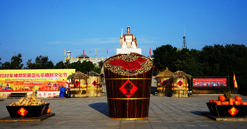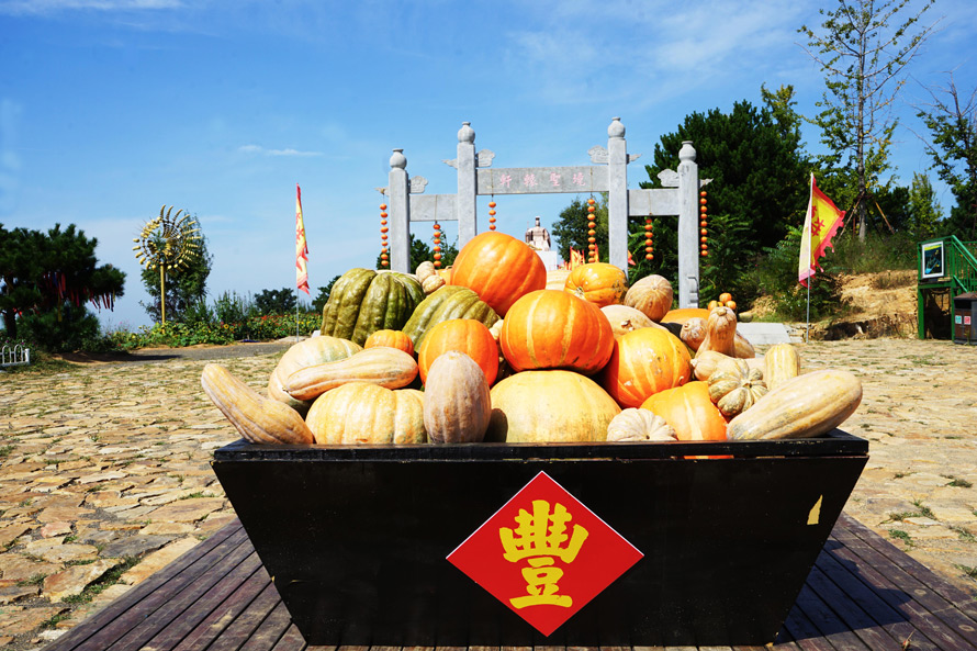 车神架景区晒出的果实堆砌成丰收、幸福、吉祥的图案,构成了“最美中国符号”,游走期间,身心俱悦。