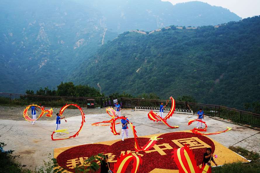 那用红辣椒和玉米构成的中国地图、摆出的国旗图案让每一抵达这里的人都忍不住与之合影,拍了又拍,还有天空之眼旁边的“我爱你中国”图案,几乎每一个看到人都面露欣喜。站在“我爱你中国”图案旁边的台阶上,对面就是蜿蜒于山脉的古长城,不禁令人油然升起深切的爱国情愫——而这样的情感萌发,不正是游历山川应该获得的体验么。