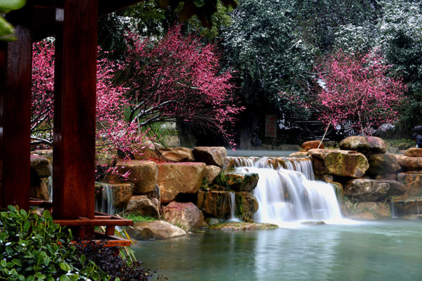 绮霞园距地下长河景区约5分钟行程,有一座三进二明堂二层砖木结构的清代徽派建筑,雕梁画栋,雍容典雅,是一代名媛赵四小姐祖居。园内陈列着赵四小姐与张学良将军相依一生的史料实物,诉说了一段“红粉知己,白首缔盟”的传奇爱情故事。