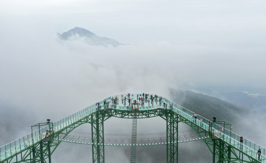 祈福广场对面就是360度天空之眼玻璃观景台,这里既可以欣赏车神架的全景又可以眺望远处的万里长城。