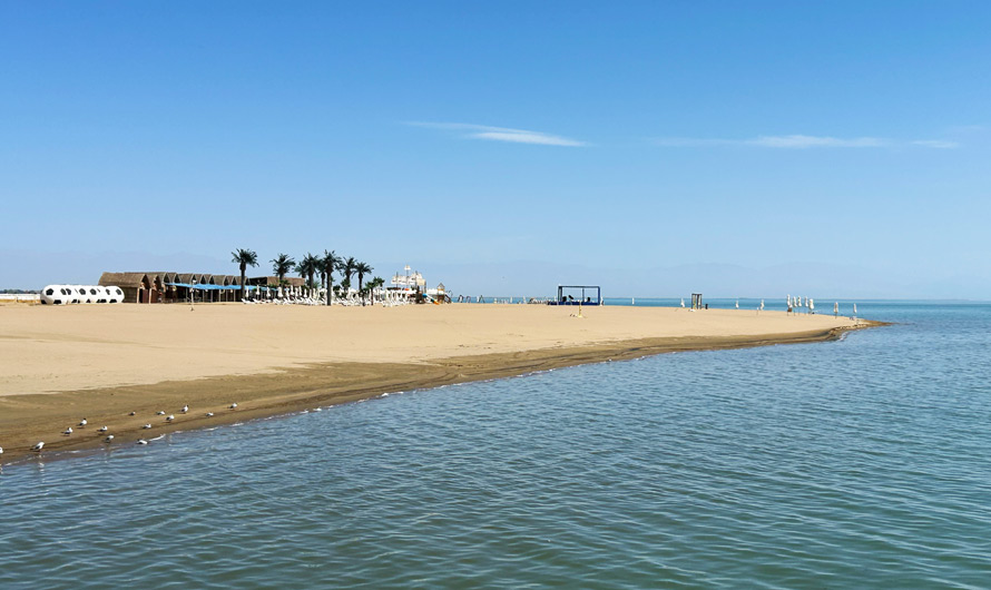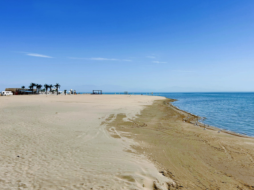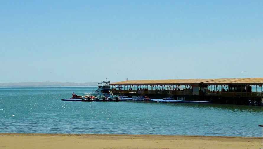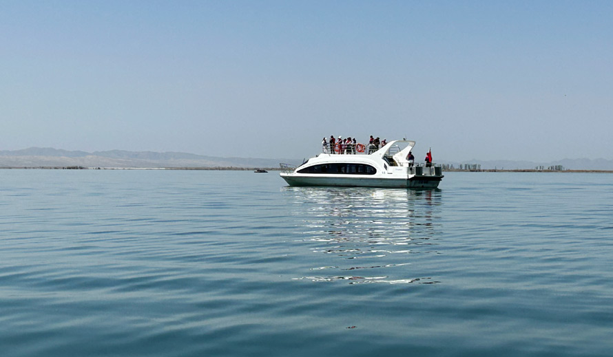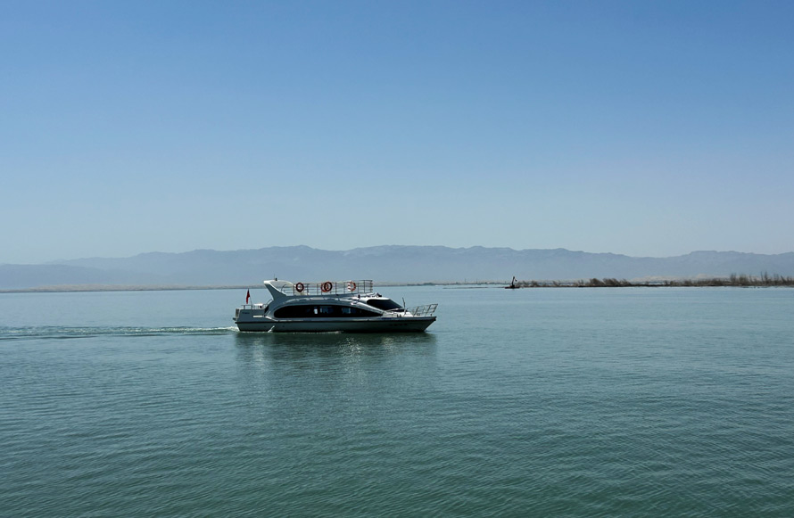 乘游艇急速穿梭于一簇簇芦苇荡中,碧波荡漾,天水一色,北岸的金沙滩被誉为新疆的“夏威夷”。
