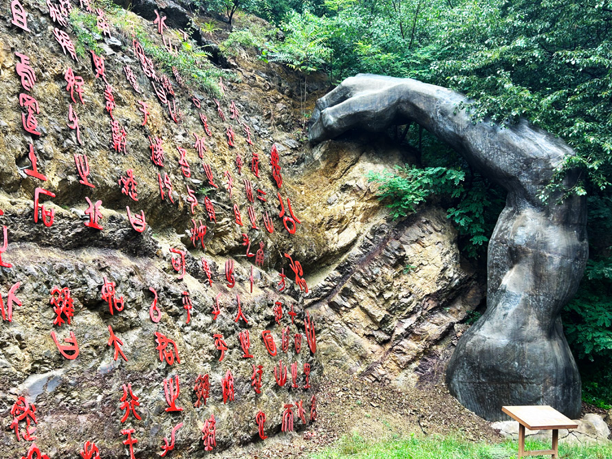 传说中的“愚公移山”处位于愚公村村东50米,山崖边一只巨大臂膀有力地揽住山石,崖刻着愚公移山的古文,臂膀雕塑几乎是每个来到这里的人都要拍照。