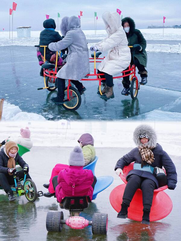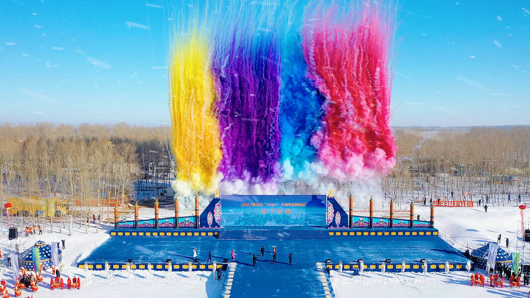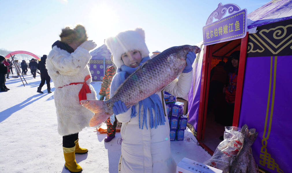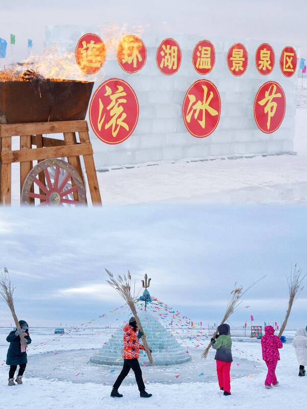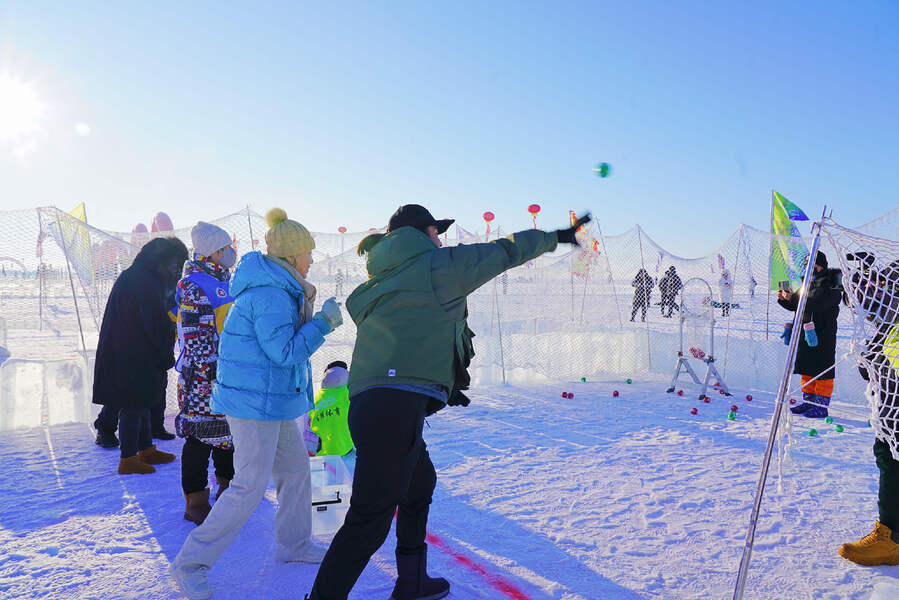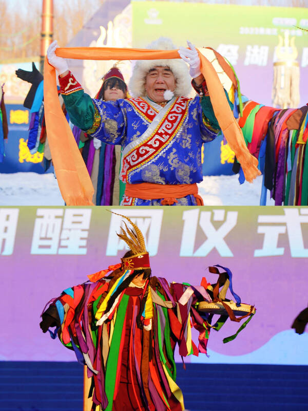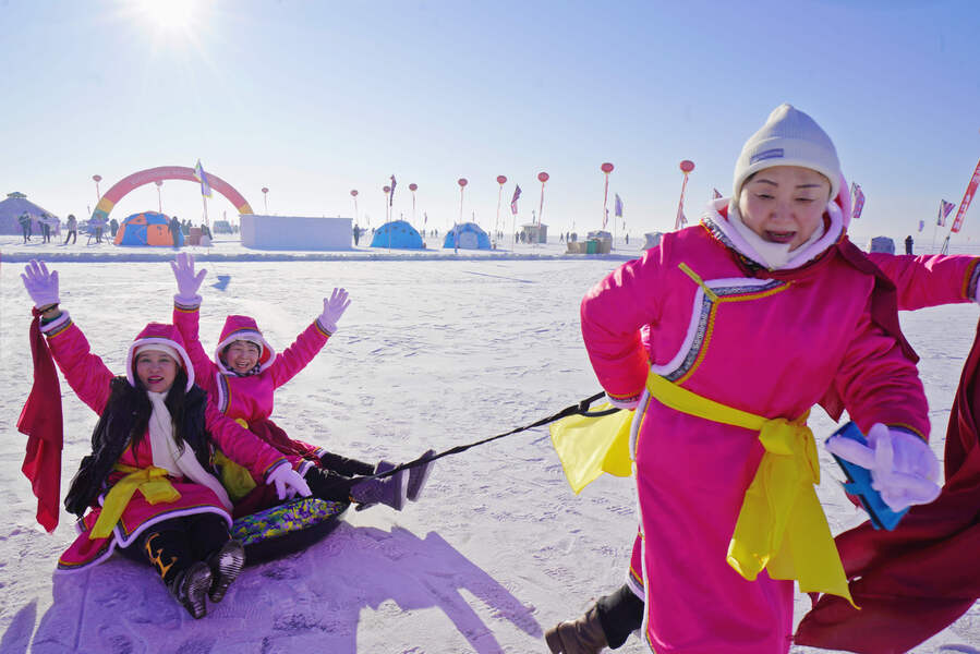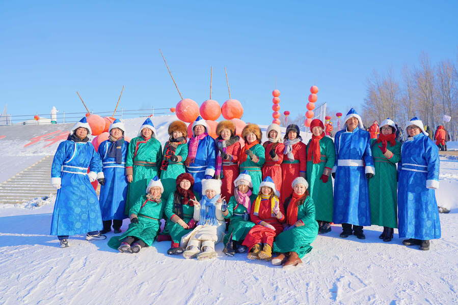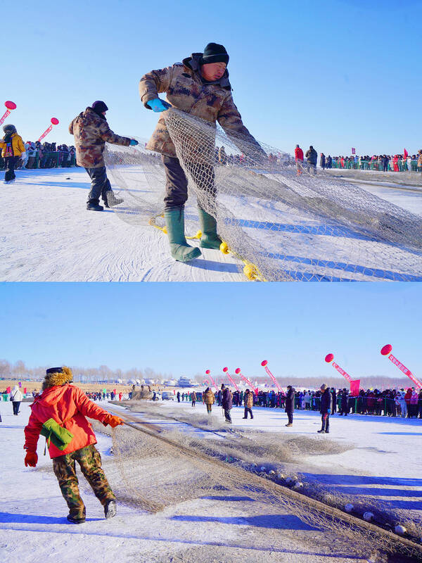气势恢宏百人马头琴表演、高擎巡游的马队、精彩的冬泳表演、美轮美奂风筝秀、趣味十足的冰上龙舟赛……一个个冰雪特色项目,让游客们目不暇接。
