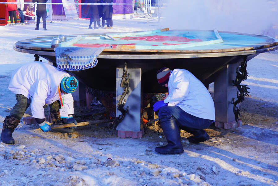 喝上近4米大锅,500斤左右的胖头鱼、约3吨纯净水烹制而成的“冰天雪地一碗汤,感受冰火两重天”的快乐,心满意足踏上回程。