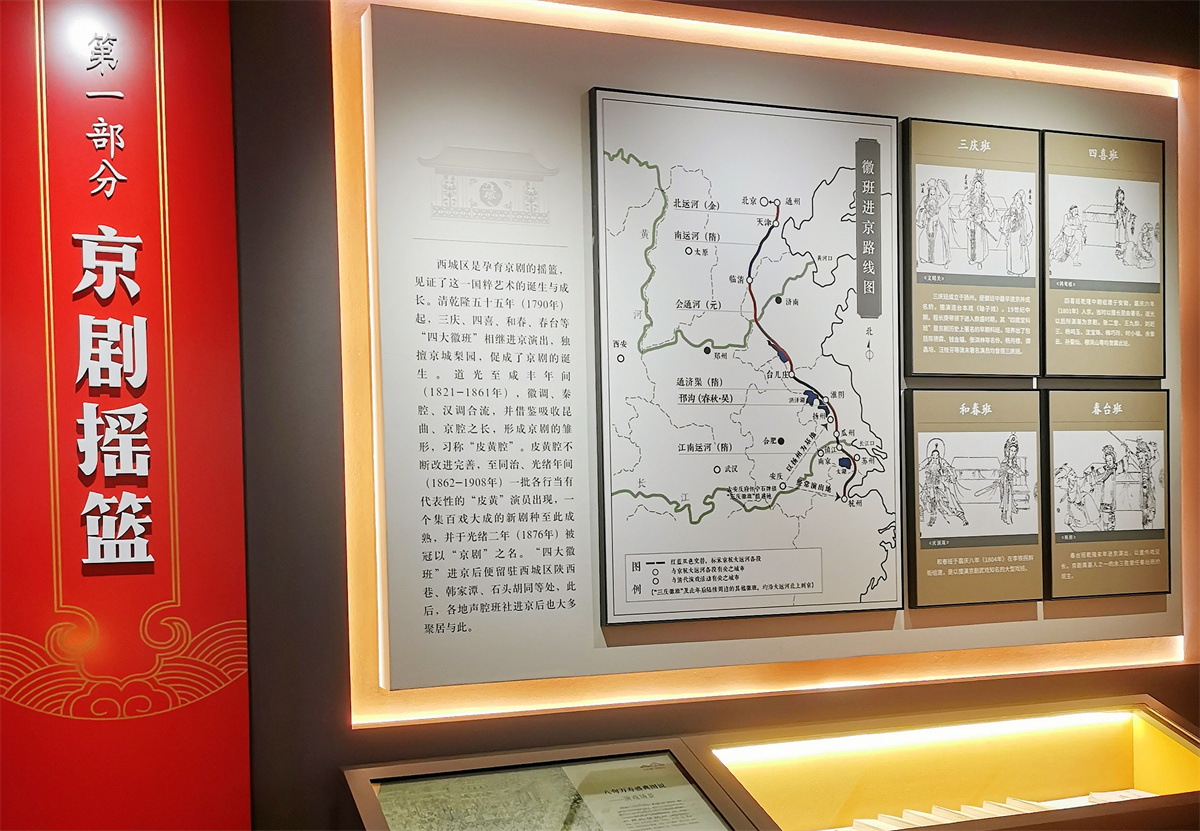 参观湖广会馆需提前通过其微信公众号小程序预约,由于大戏楼仍在正常接待演出,并非全天候开放,提前规划才能不错过精彩。走进会馆右转,便能看到京城目前最小的博物馆展厅——乡贤祠。这里的《菊海鸿濛——京剧发祥地展》堪称一部“京剧孕育史”,通过徽班进京的线路图、四大徽班的居住分布等细节,清晰还原了这一地区孕育京剧的全过程,让参观者对城南文化的历史脉络有了直观认知。展厅内的纸质资料、老照片、戏装等实物,更是真实定格了历史中的重要节点,以及百姓心中京剧大师们的艺术生涯片段。