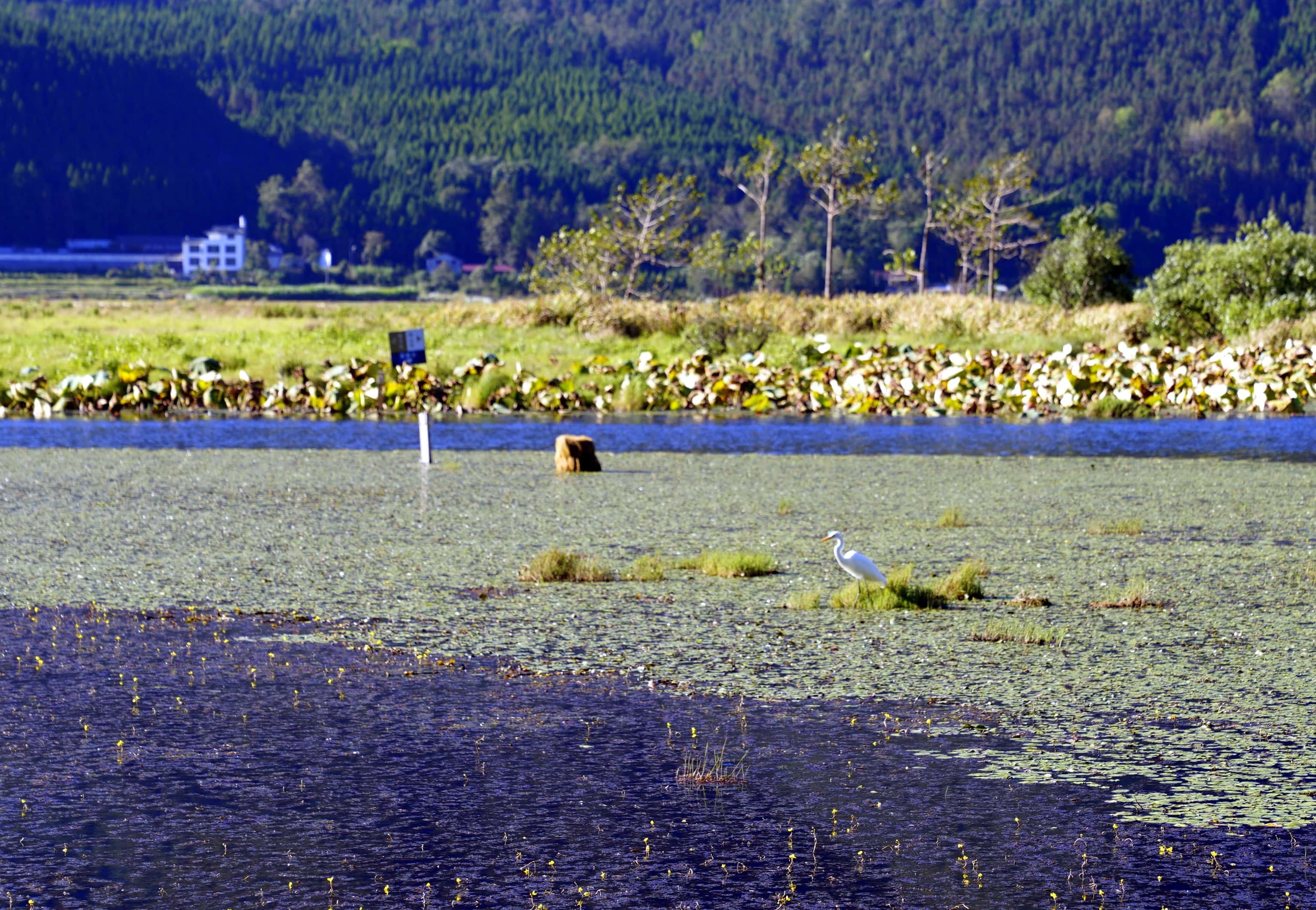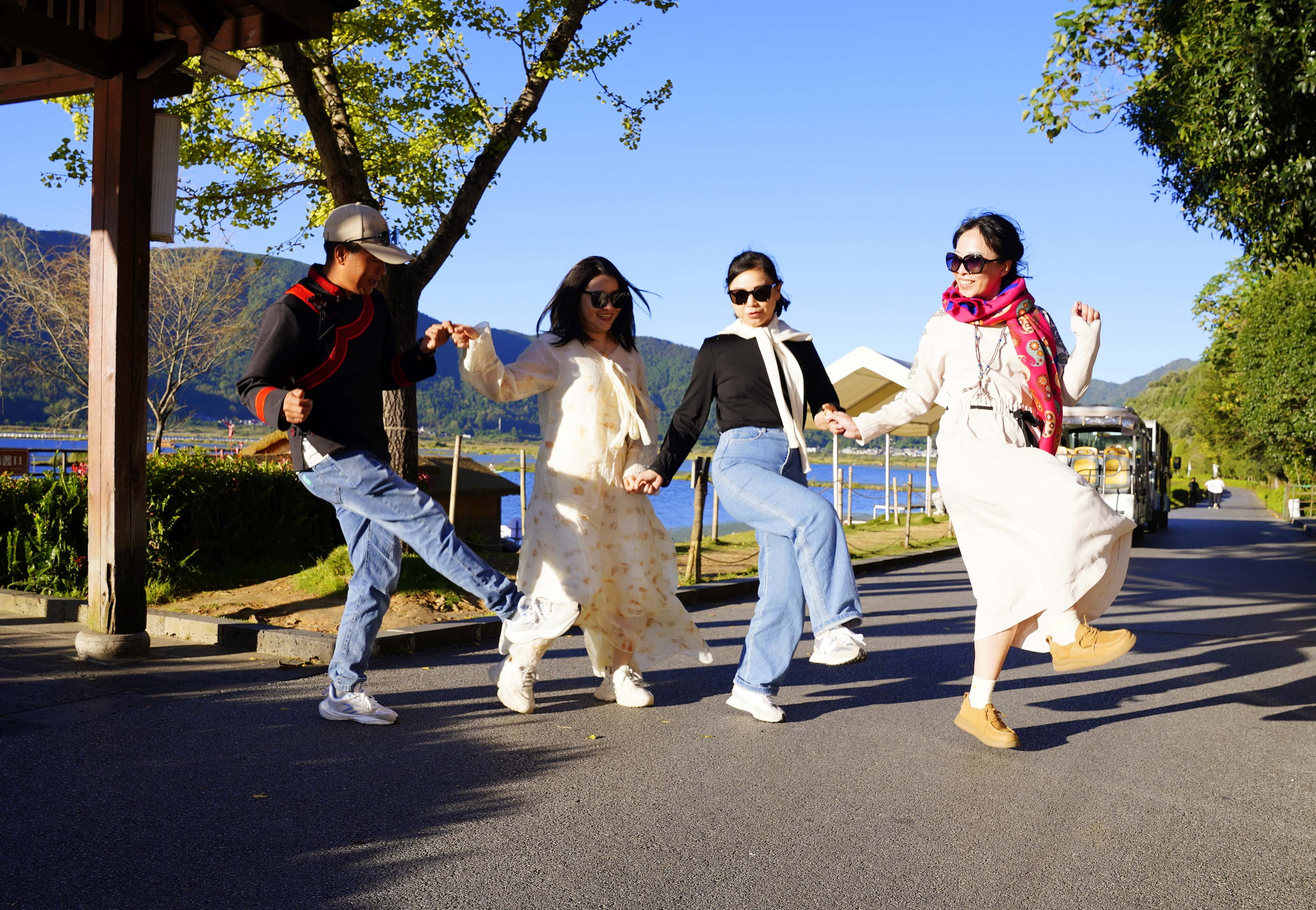 群山环绕的湿地是摄影爱好者的天堂,推荐三处取景地:二、三号渡口岸边,抓拍游船穿梭、罩鱼劳作与草排嬉戏的鲜活场景;水上科普长廊,定格湿地盛景与栖息水禽的自然画卷;二号渡口附近,收录青山映碧水的诗意全景,沿途游客的载歌载舞亦是动人瞬间。