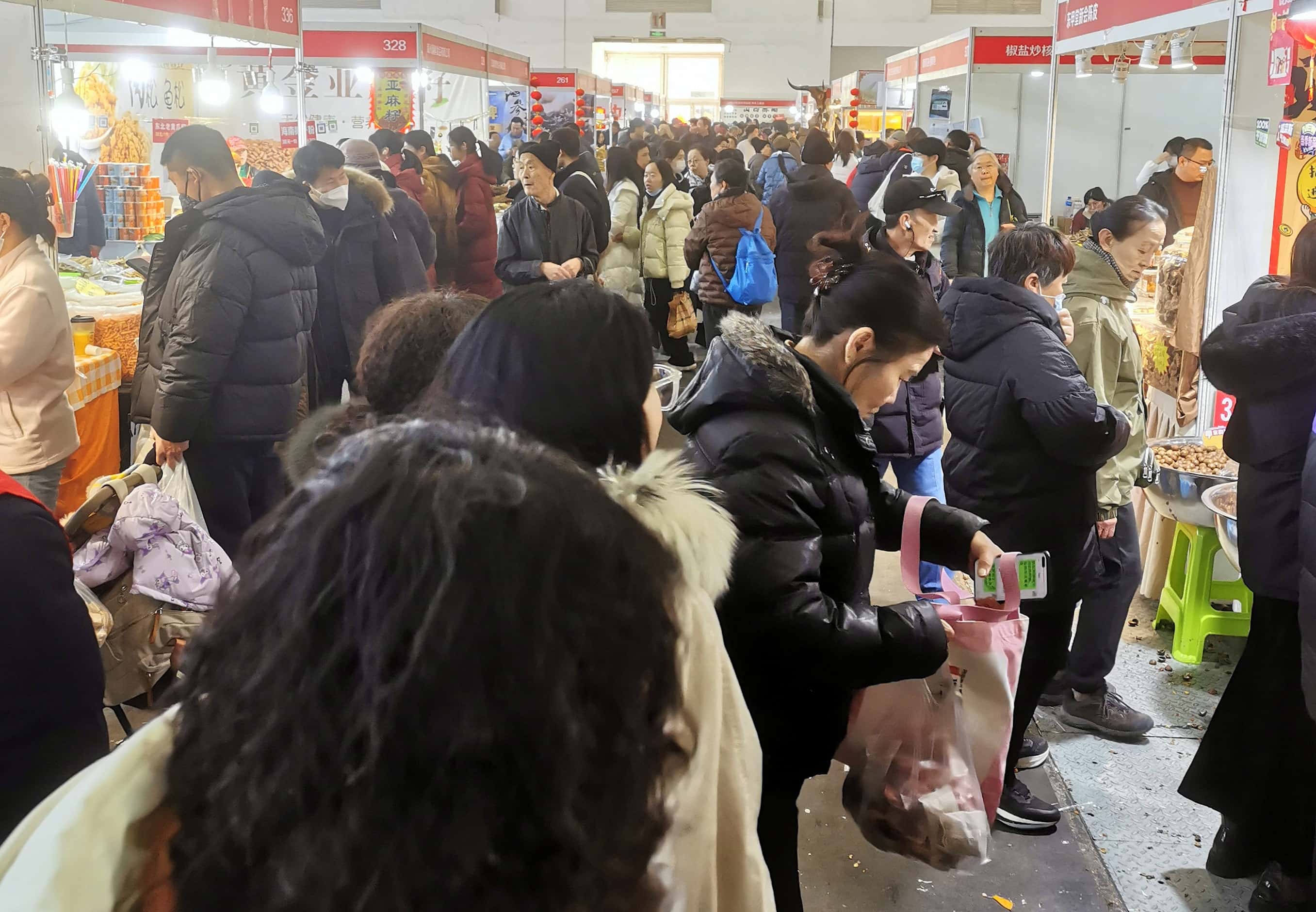 春节将至,京城农业展览馆的第30届老北京年货大集成了最具人气的年味打卡地。人们或驱车前往,或拉着小推车乘公交而来,场馆内外人头攒动,免费品尝的吆喝、打听价格的问询、热热闹闹的讨价还价声交织,满是老北京的市井烟火气。