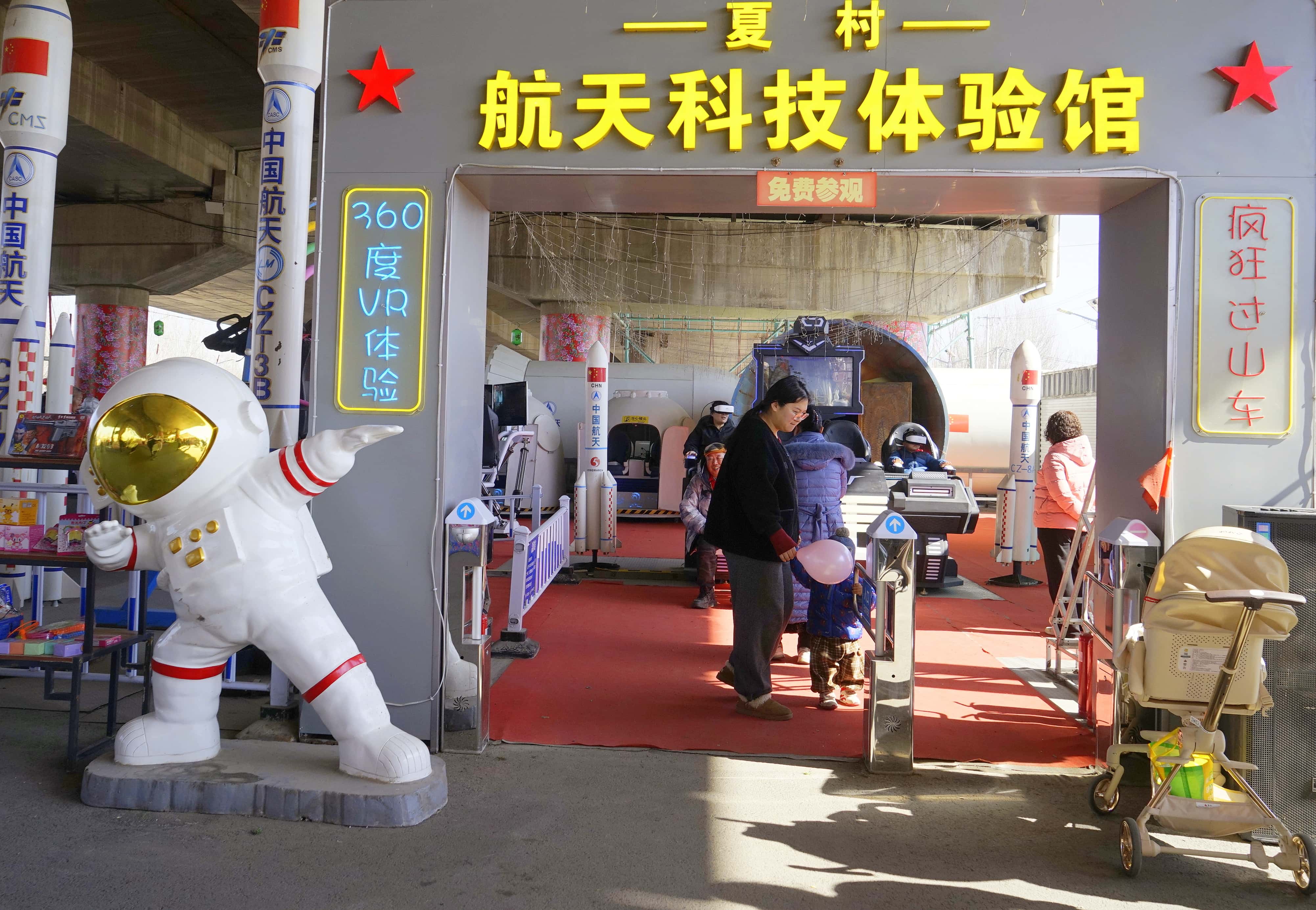 航天科技体验馆运用AR技术,带来360°沉浸式宇宙之旅,惊险刺激的虚拟过山车让人直呼过瘾。孩子们驾驶卡丁车风驰电掣,体验速度与激情;拉弓射箭一展身手,套大鹅与萌趣动物互动,各式趣味项目让欢声笑语洒满整个年会现场。