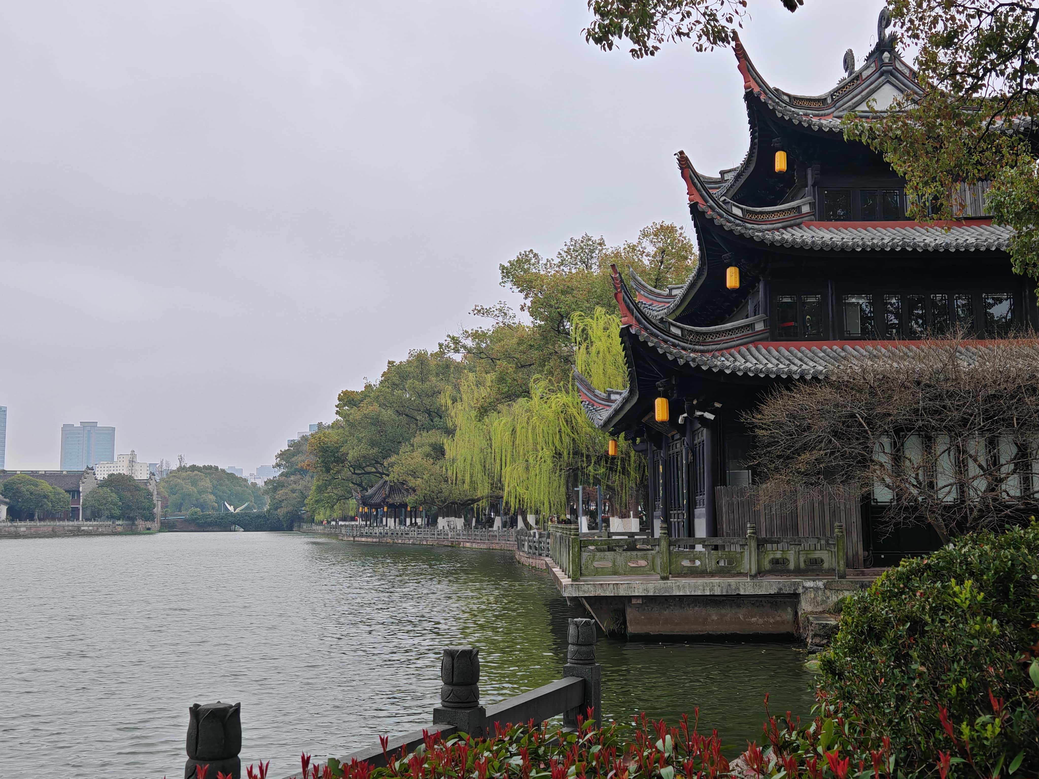 春日漫步湖畔,景致格外动人。亭台楼阁错落有致,石拱桥横跨碧波,垂柳依依随风轻拂,远处现代高楼的倒影与古雅景致相融,温婉又雅致。静坐亭中,望着一湖清澈碧水,思绪也随之沉静;缓步走在青石板路上,步履舒缓,心绪也渐渐放松,尽享闹市中的悠然惬意。