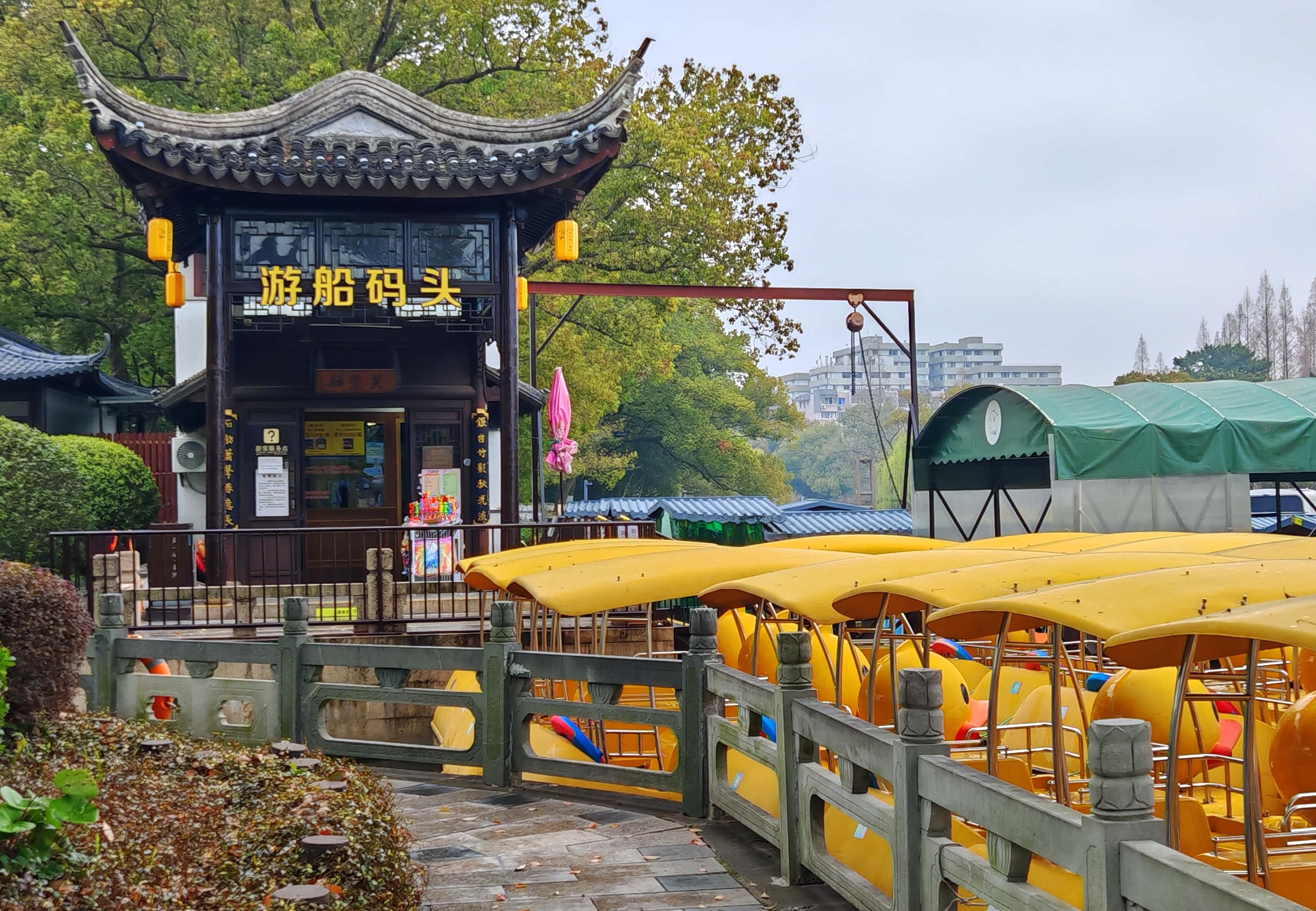 若想更亲近湖水,可在游船码头租一艘小船,泛舟于碧波之上,亲身感受江南水乡的温婉意趣。或是乘坐游船,近距离观赏湖心建筑,从不同角度领略月湖的别样风光,别有一番闲适滋味。