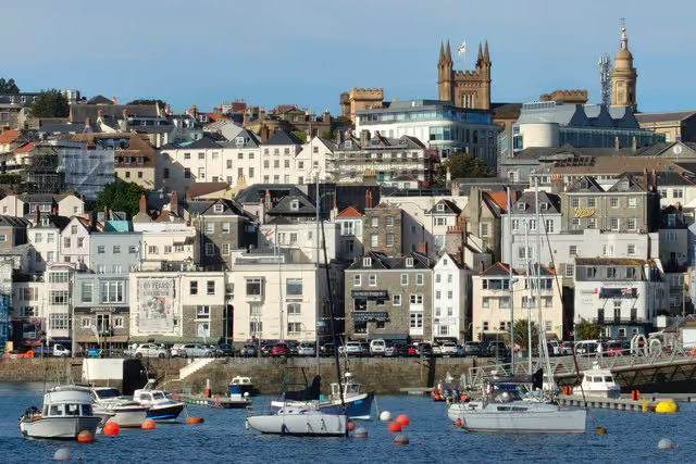 伊丽莎白学院,圣彼得港的景色。根西岛应有尽有,适合一个宁静、无科技的度假地,对英国年轻人来说依然是一颗隐藏的宝石,但当他们偶然发现这里时,这里将成为一阵热门。