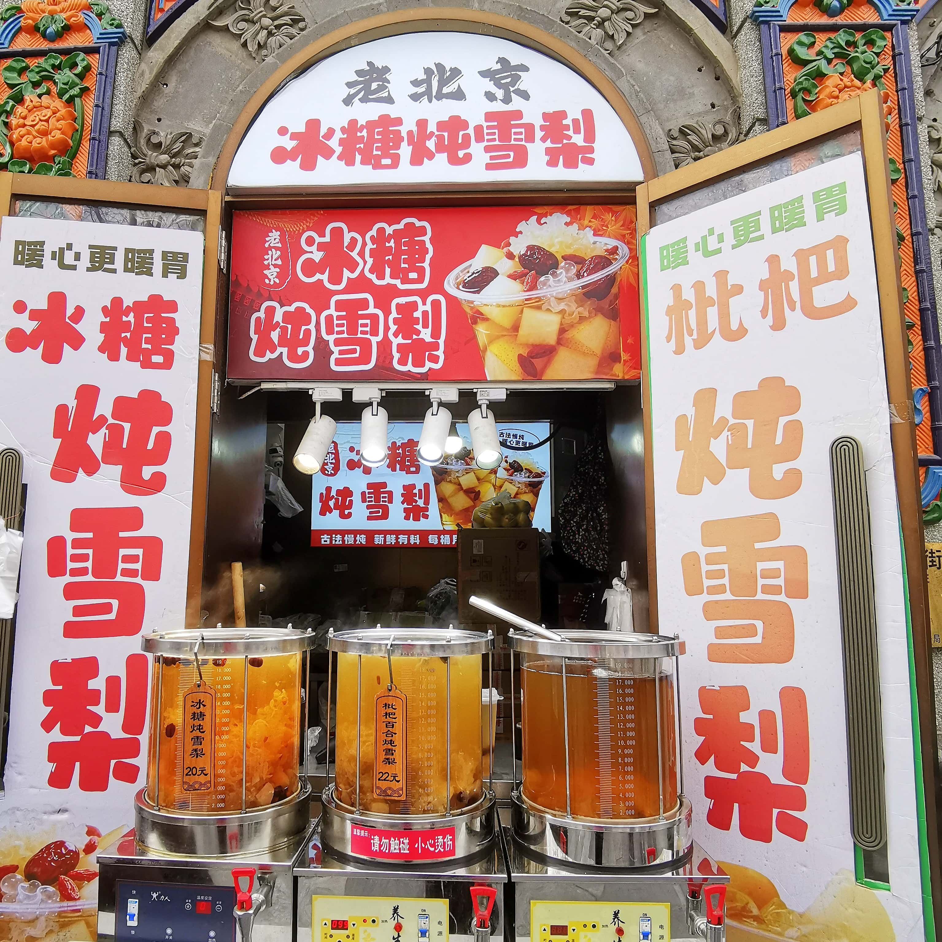 逛累了,前门大街的美食便是最好的慰藉。这里汇聚了老北京各色风味小吃,门钉肉饼外酥里嫩、爆肚鲜香爽口、豆汁醇厚地道,还有冰糖炖雪梨清甜解腻。方砖厂69号炸酱面门前常年排着长队,外地游客争相品尝这口正宗京味;鲜鱼口等胡同里的老字号美食街,更是一站式满足游人的味蕾需求,让每一口都充满京城记忆。