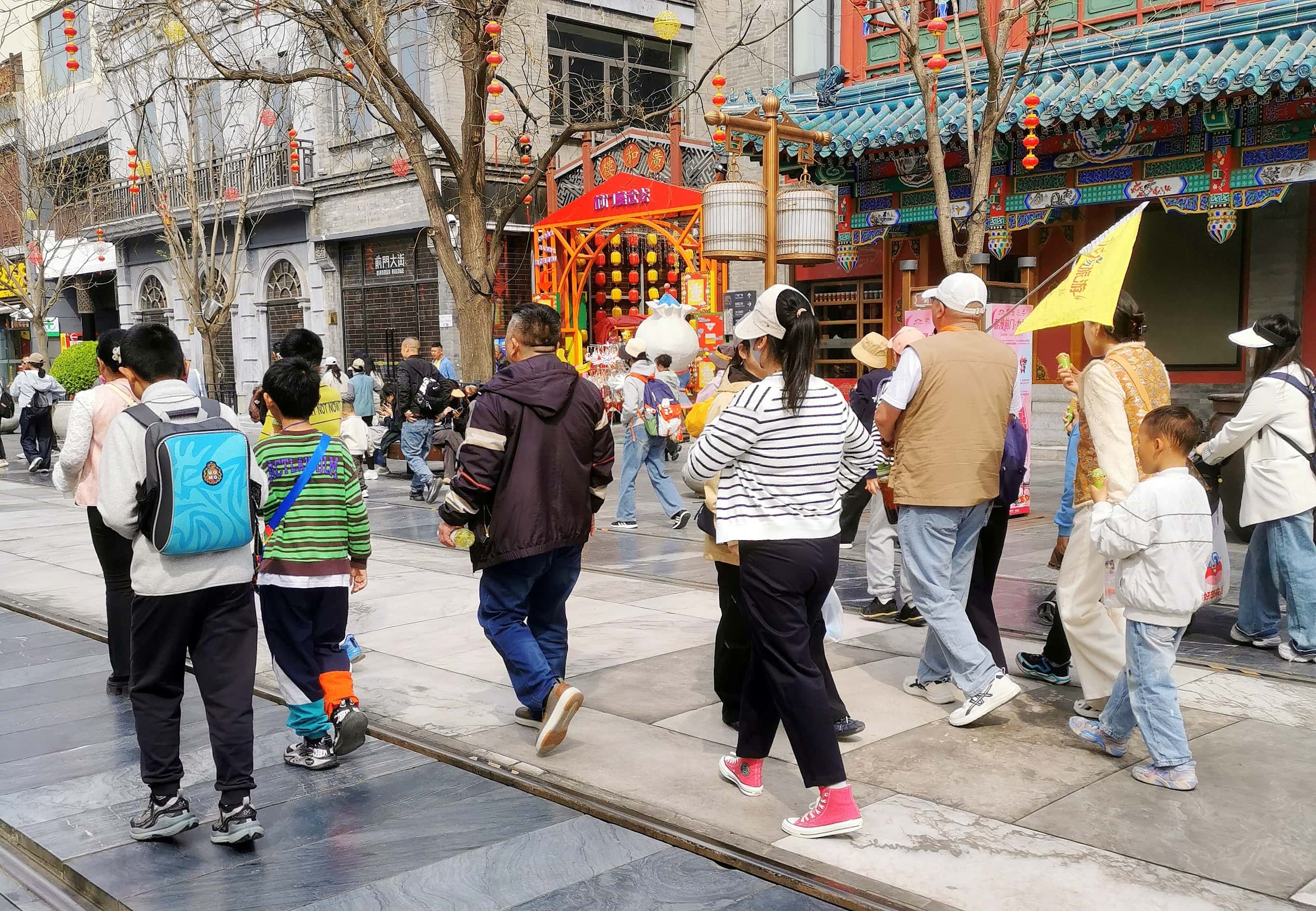 徘徊在大街上,惊喜不止于此。北京御品市集里,特色皇家礼品尽显底蕴;中国书店文创店内,一件件充满京味的作品吸引着游人驻足,让人们在逛购中感受京城文化的魅力。清明节前夕,来自外地的研学团队更是成为街上的主流,他们循着中轴线的足迹,探寻老北京的历史,让前门的文脉在代代相传中焕发新生。