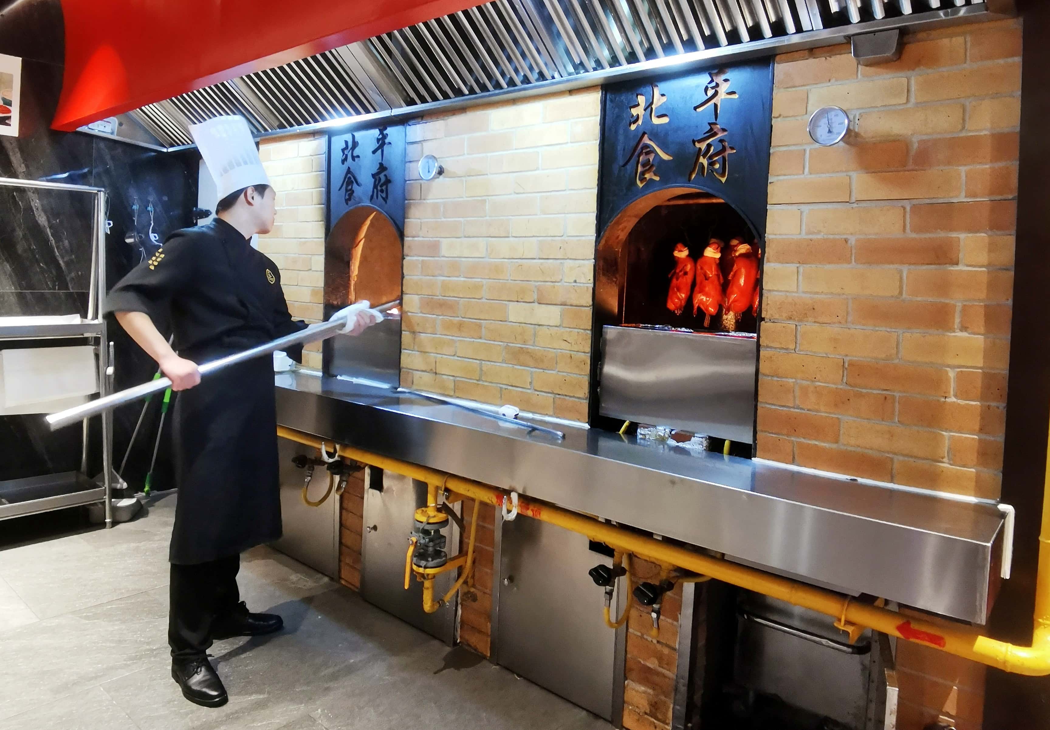 刚踏入店内,浓郁的烤鸭香气便扑面而来,熊熊炭火炉中,烤得金黄焦亮的鸭坯格外惹眼,大师傅在明档前娴熟操作的背影,引得食客不自觉放慢脚步,驻足观望这份地道的京味烟火。