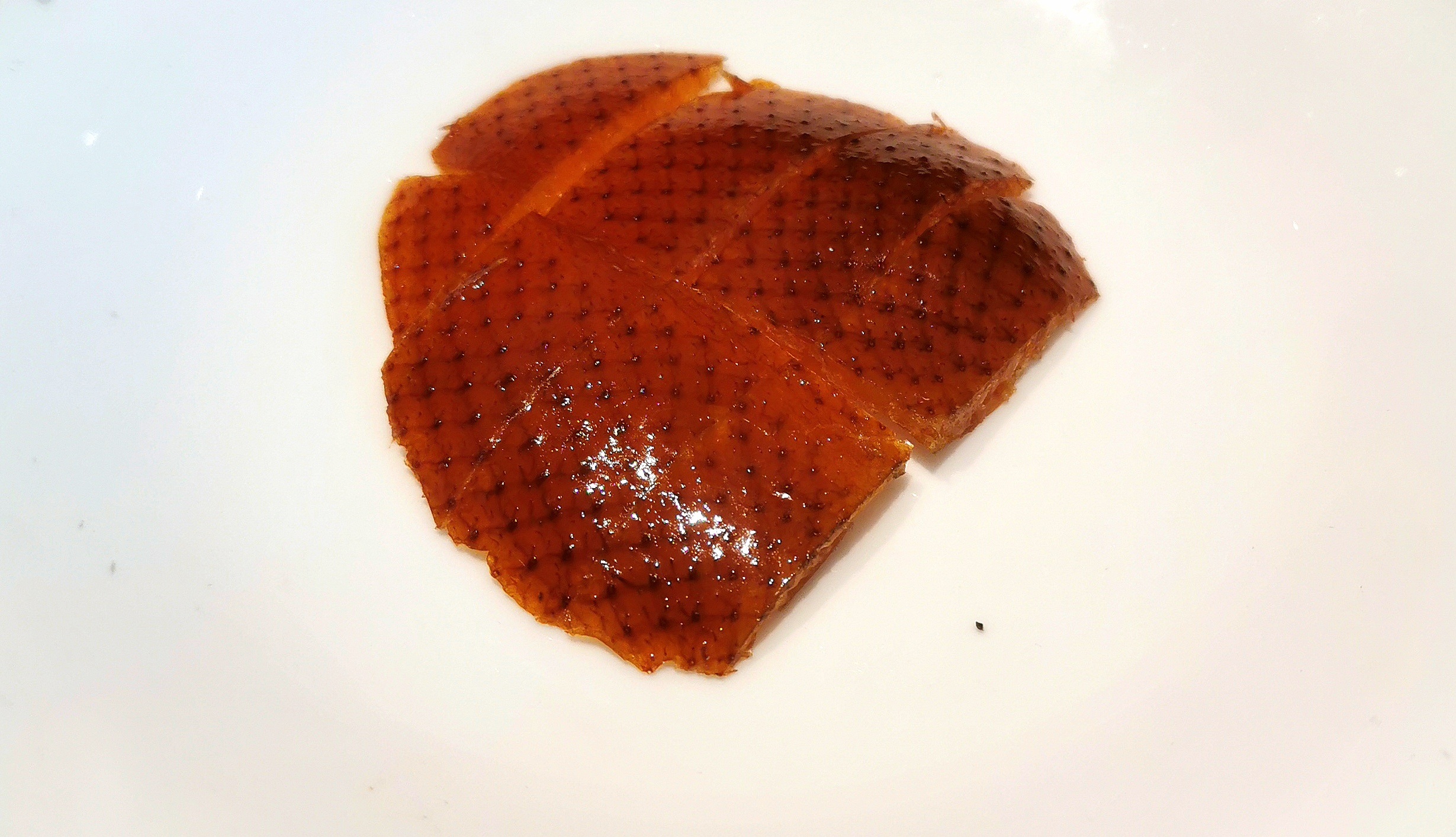 以往聚餐总点满桌菜肴,难细品烤鸭本味,此次特意精简菜品,只点春饼、烤鸭、乾隆白菜,还将鸭架加工成椒盐口味。餐桌少了七碟八碗的繁杂,反倒能静下心来品味烤鸭的精髓。不一会儿,师傅片好的鸭子上桌,两盘烤鸭旁还有装了几片鸭肉的盘子,带着好奇夹起一片轻蘸酱入口,焦香中裹着极致的鲜嫩,才知这是鸭身最鲜美的部位。
