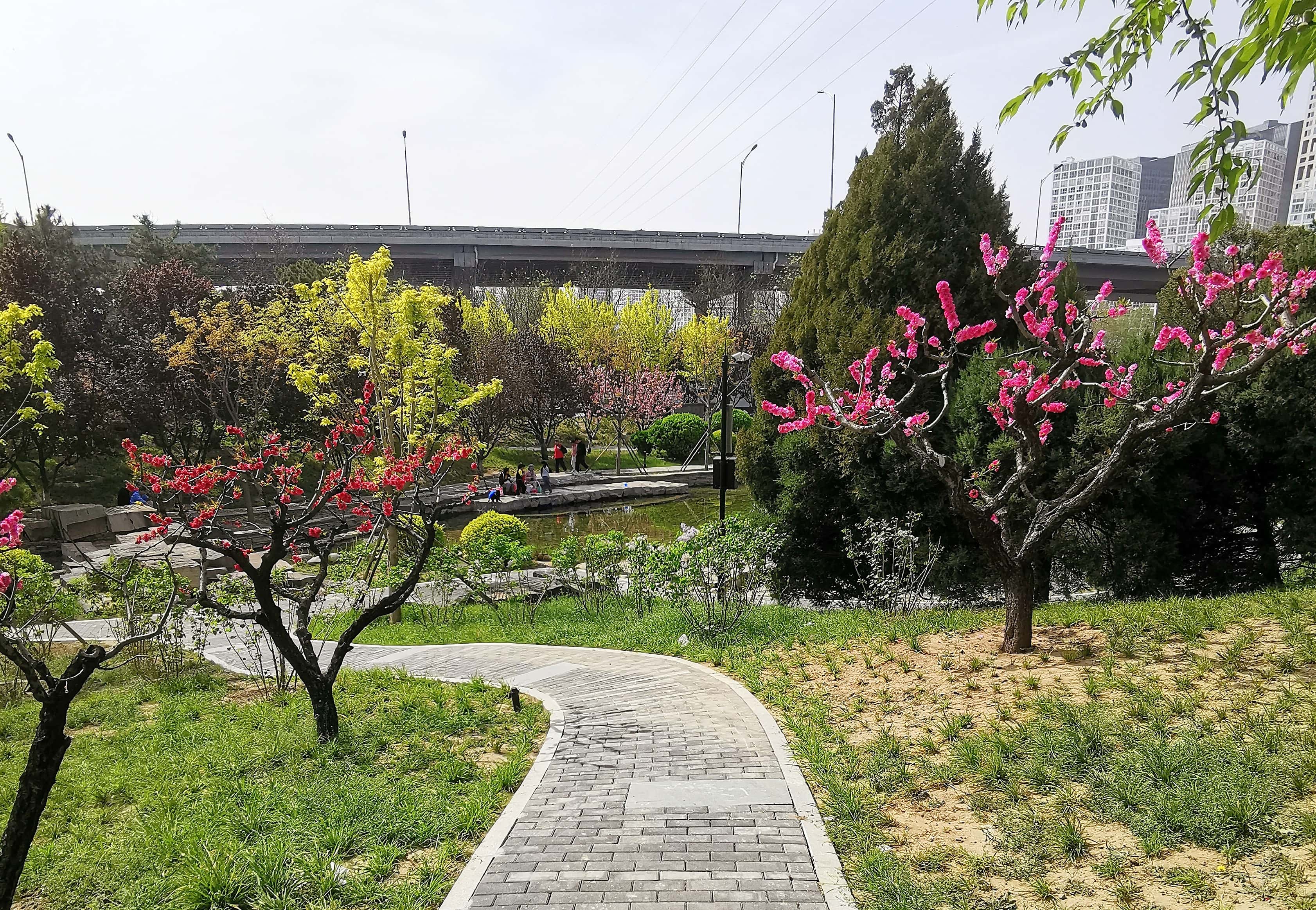 沿着步道缓缓前行,身边是争奇斗艳的花木,眼前是气势恢宏的现代建筑群,千年运河文脉、盎然春日美景与国际化都市风貌完美交融,构成独属于京城春天的难忘画面。