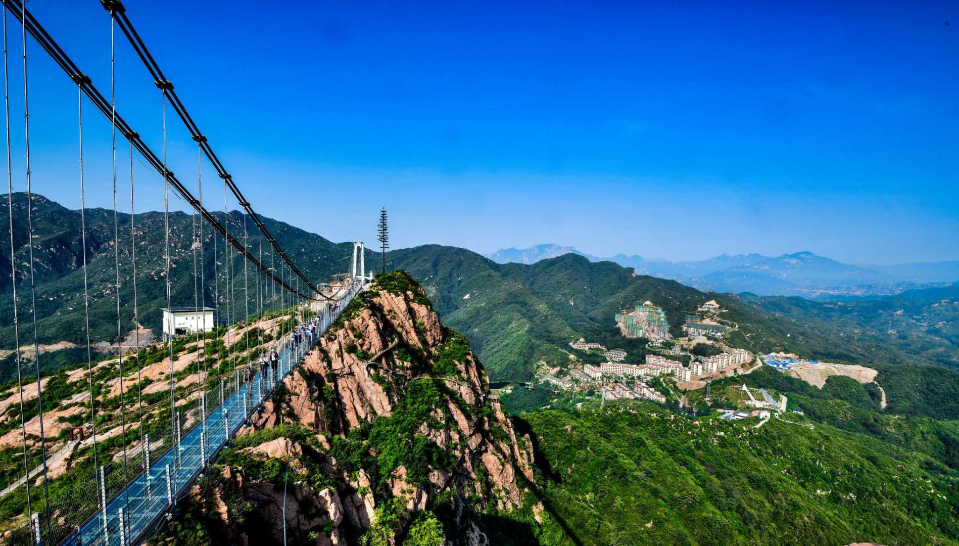 ▲黄金寨原生态旅游区的玻璃吊桥。