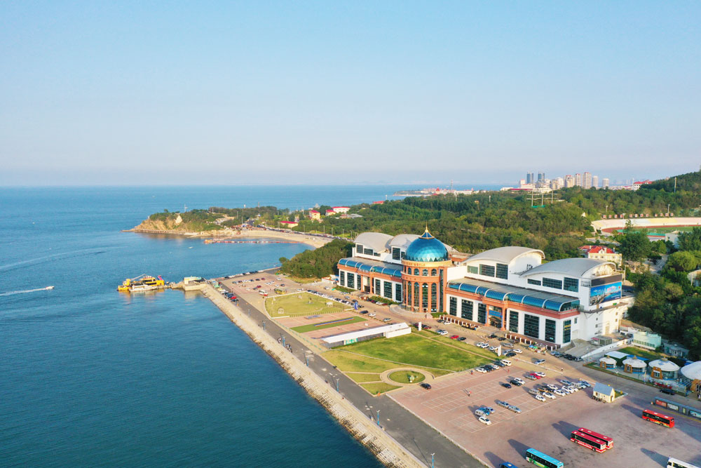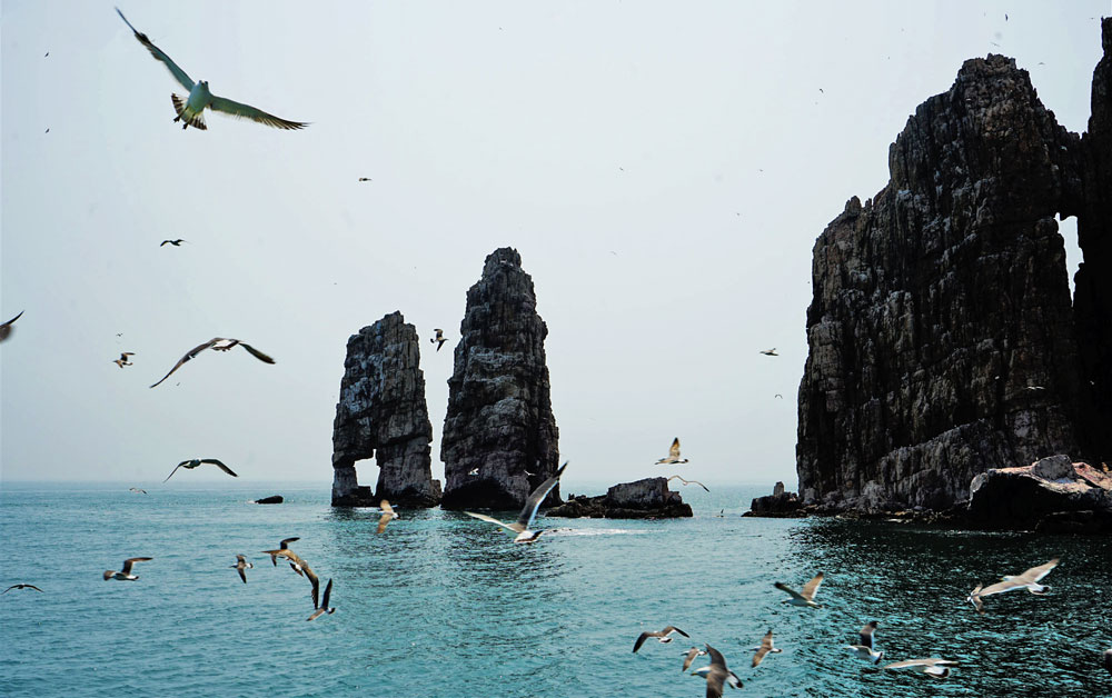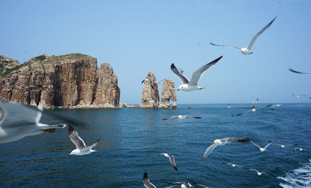 无垠的大海,大海中贝类养殖网格,以及海鸥居住的岛屿,描摹出烟台这一方海域的生机与活力。