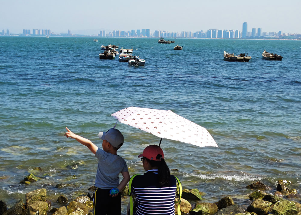 ▲烟台海边的母子。摄影/放猪江湖