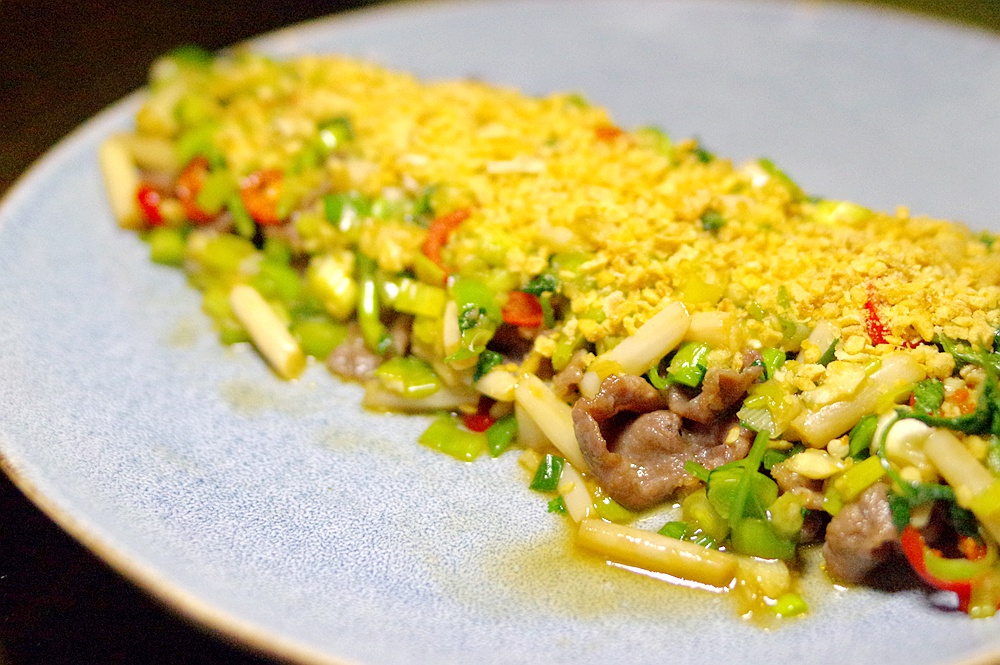 藕尖牛花腱:腱子肉普遍卤着吃,这里居然生炒!呈现形式也完全出乎意料,让我们差点以为上错菜。非常有新意,极易让人浮想联翩。