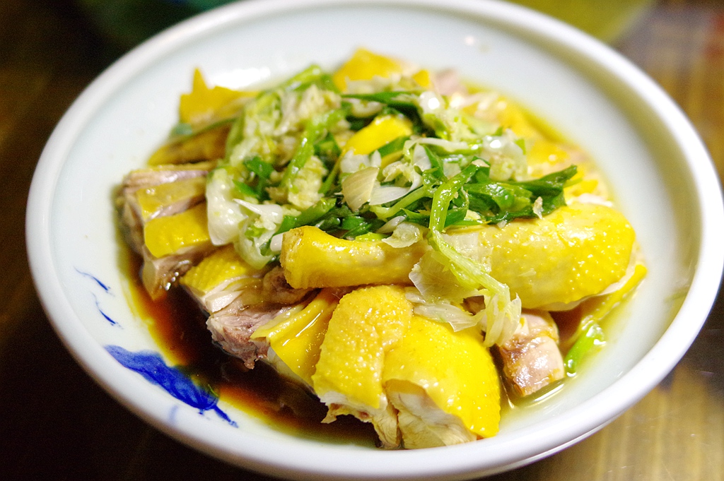 油葱鸡:白斩鸡做得好的馆子不难找,但这里的出品就是感觉有点不一样,鸡皮明黄,嚼之脆爽,鸡肉鲜嫩,淡雅隽永。