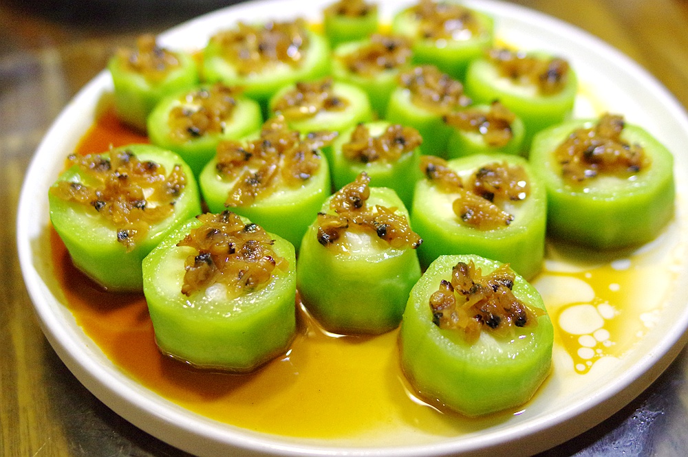 蛤蜊蒸胜瓜:这道菜我自己做过传统版的,挖坑添肉茸,挺费事,还导致出品不够均匀。人家只是在瓜节上面放一点煸炒锅的花蛤感,轻描淡写就兼顾了卖相和口味。